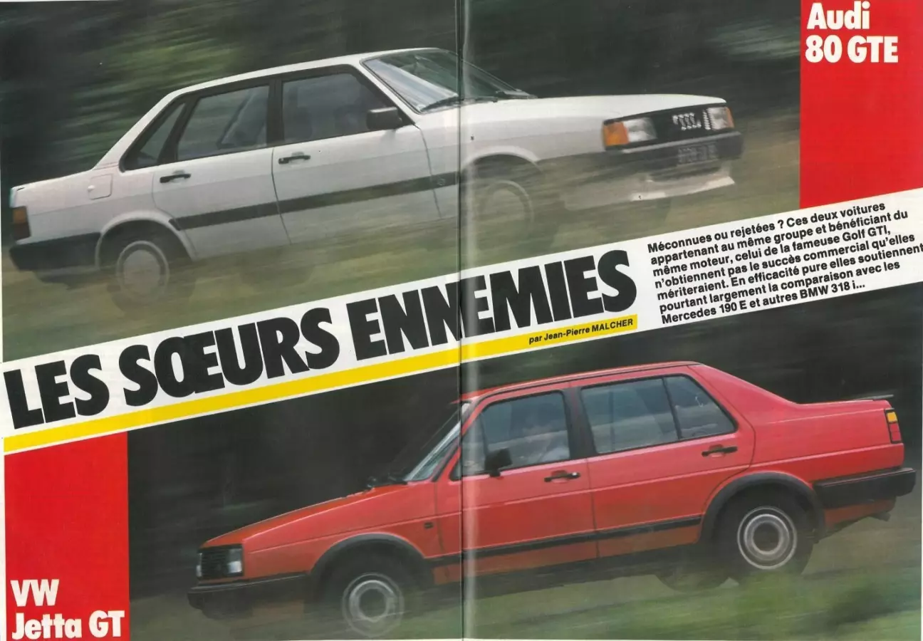 Перевод теста-сравнения Audi 80 B2 GTE vs VW Jetta 2 GT от французского автомобильного журнального издания Auto Hebdo, № 479, Июль, 1985.