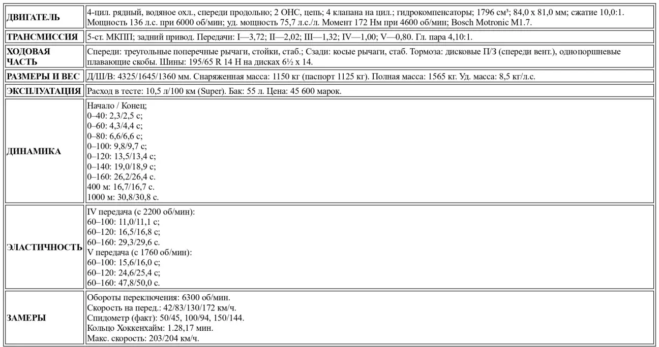 Великолепная четкость переключений — одна из причин того, почему тестовая BMW при финальных замерах в Хоккенхайме, несмотря на 30-градусную жару, разгонялась так же резво, как и в начале пути. Тогда столбик термометра показывал всего 13 градусов, что наверняка способствовало лучшей отдаче двигателя. В обоих случаях трансмиссия проявила себя необычайно выносливой: даже жесткие переключения при замерах не привели к повреждению синхронизаторов и вилок включения. В любом случае, «is» из парка sport auto явно была в отличной форме, так как, несмотря на лишние 25 килограммов из-за богатого оснащения, она и при начальных, и при финальных замерах (9,8 и 9,7 секунды до 100 км/ч соответственно) всегда оказывалась быстрее паспортных данных (9,9 секунды).