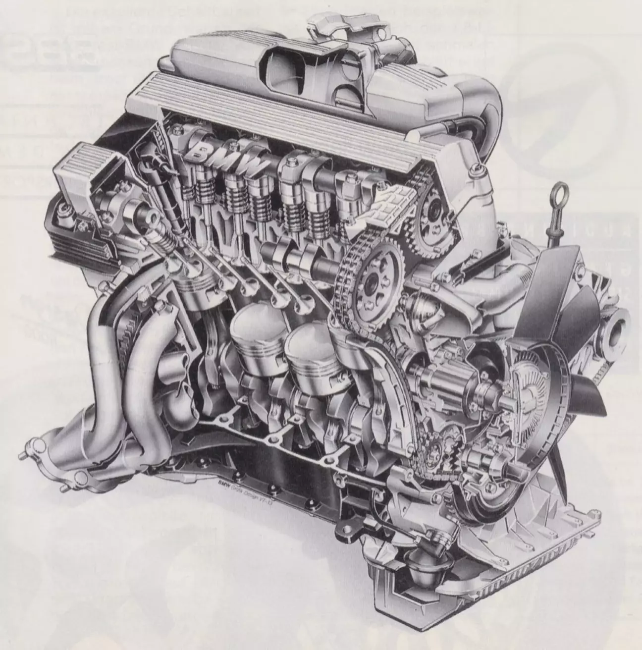Зато четырехцилиндровый двигатель, если только на нем не решит попировать хитрая куница, относится к числу самых неприхотливых в обслуживании в своем классе. Благодаря трехэлектродной конструкции свечи зажигания собственной разработки требуют замены лишь через 50 000 километров. Регулярная регулировка тепловых зазоров клапанов на 318is также не требуется. Новое поколение четырехцилиндровых моторов, выпускающееся с 1987 года, впервые вышло на рынок с гидрокомпенсаторами. Это преимущество унаследовал и представленный в 1990 году многоклапанник. В остальном двигатель 318is имеет мало общего со своим предшественником. Стратеги BMW смогли начать планирование практически с чистого листа. Это дало им свободу реализовать почти все пожелания в плане мощности и технологичности производства. Мотор крайне нетребователен к обслуживанию. Так, клапаны наклонены друг к другу под сравнительно узким углом в 39,5 градусов, что позволяет получить как благоприятную для сгорания компактную форму камеры, так и прямолинейные каналы. С другой стороны, головка блока цилиндров при этом получилась довольно узкой.