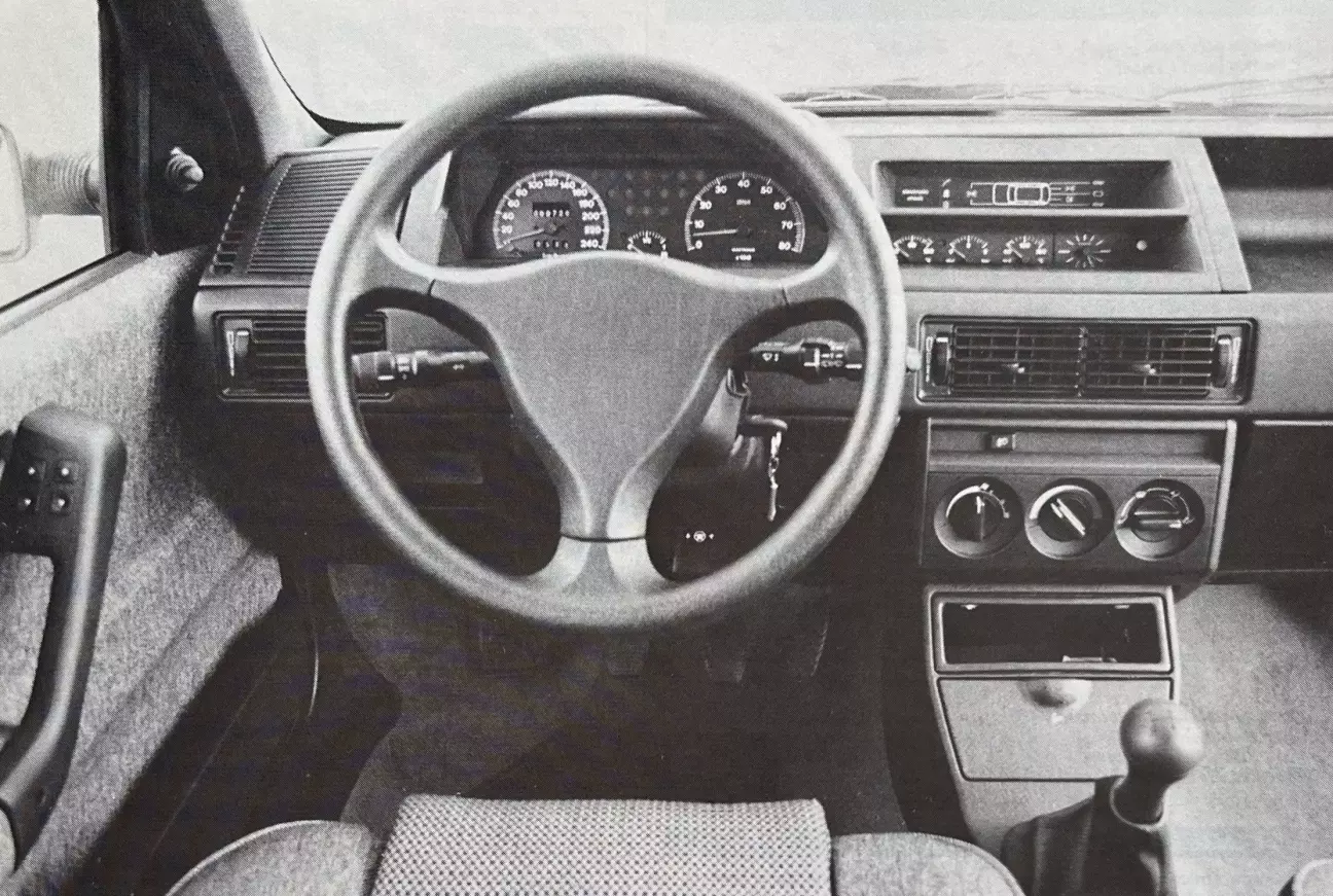 На подобном семейном GTI гидроусилитель необходим без всяких оговорок. Достаточно пересесть в Golf 16S, лишенный его, чтобы убедиться в благах этой системы, которая, учитывая вес Tipo, была обязательна в любом случае. Никаких проблем при маневрировании, как и при активной езде, где передняя ось демонстрирует точность. Впрочем, она гораздо менее острая, чем у Volkswagen, и Fiat кажется немного ленивым на входе в поворот. Эту черту еще больше подчеркивают недостатки шин, которые слишком узки. На этот раз и во Франции, и в Бельгии руль — с тремя удачно расположенными спицами — к сожалению, обтянут тем же липким материалом, что и рукоятка КПП на французских версиях. Рулевая колонка, как и на всех Tipo, регулируется по высоте.