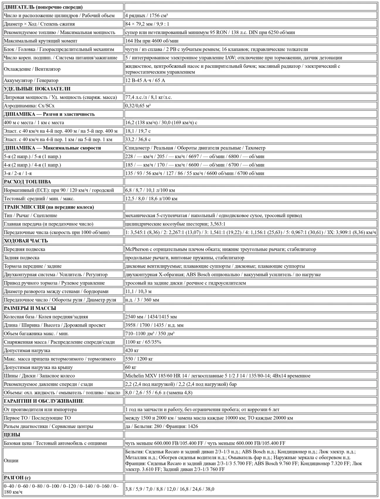 Эти достойные динамические показатели также достигнуты благодаря очень сближенным передаточным числам трансмиссии. Скорость 205 км/ч достигается, например, на 6700 оборотах, в самом начале красной зоны, в то время как большой вес машины и характеристики 16-клапанного мотора в целом провоцируют к езде на высоких оборотах. Все это не способствует экономии энергии, и Tipo i.e. 16V оказывается заметно прожорливее конкурентов. Тем не менее разрыв остается в рамках разумного, учитывая общие возможности, и 12,5 л/100 км, зафиксированные по итогам теста, в конечном счете являются скорее лестным показателем отдачи этого нового мотора.