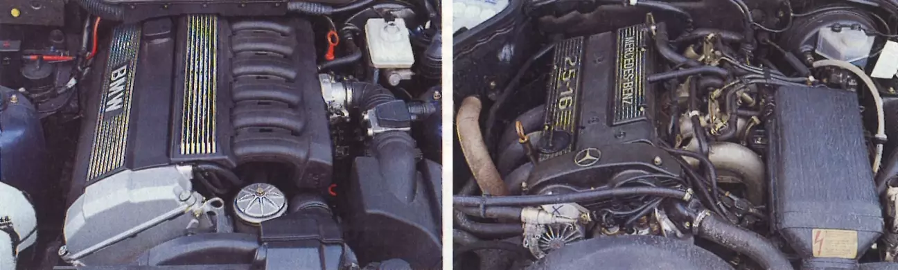 Эти ключевые показатели наглядно раскрывают характеры обоих моторов. В BMW не стали настраивать шестерку исключительно на максимальную отдачу, а уделили особое внимание плавности работы и культуре хода, как и подобает благородному седану; все-таки мотор заимствован у 5-й серии. В сравнительном тесте спортивных седанов (sport auto 1/1990) его показатели эластичности не слишком впечатлили. Причина крылась в избыточном боевом весе 525i, которая тянула на 1570 кг, убивающих всякий темперамент.