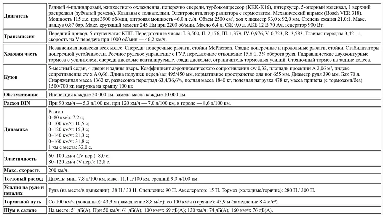 Показателем эластичности турбодизеля служат замеры в промежуточных дисциплинах: на ускорение с 60 до 100 км/ч на четвертой передаче Fiat Croma требуется всего 8 секунд, а диапазон от 80 до 120 км/ч на пятой она преодолевает за 12,8 секунды. Таким образом, турбированная Fiat Croma не только на добрые три секунды быстрее своего заведомо тяговитого предшественника, но и оказывается недосягаемой, к примеру, для 211-сильной BMW 535i, которой на эти упражнения требуется 9,6 и 14,2 секунды соответственно. В свете этого очевидно, что подбор передаточных чисел пятиступенчатой механики с легким приводом отлично согласован с характером моментного двигателя.