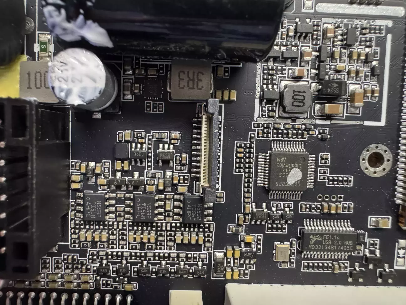 Конденсатор правильного номіналу, видно старесенький але надійний USB Hub Fe1.1 USB 2.0.