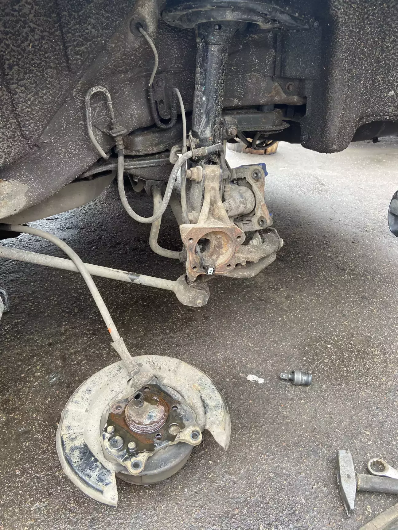 Начал гудеть задний подшипник, вернее не гудеть а издавать периодический звук «вуп-вуп». Чем быстрее скорость тем чаще вуп- вуп. При повороте вправо увеличивался, при повороте влево исчезал. Заменили левую заднюю ступицу, звук исчез.