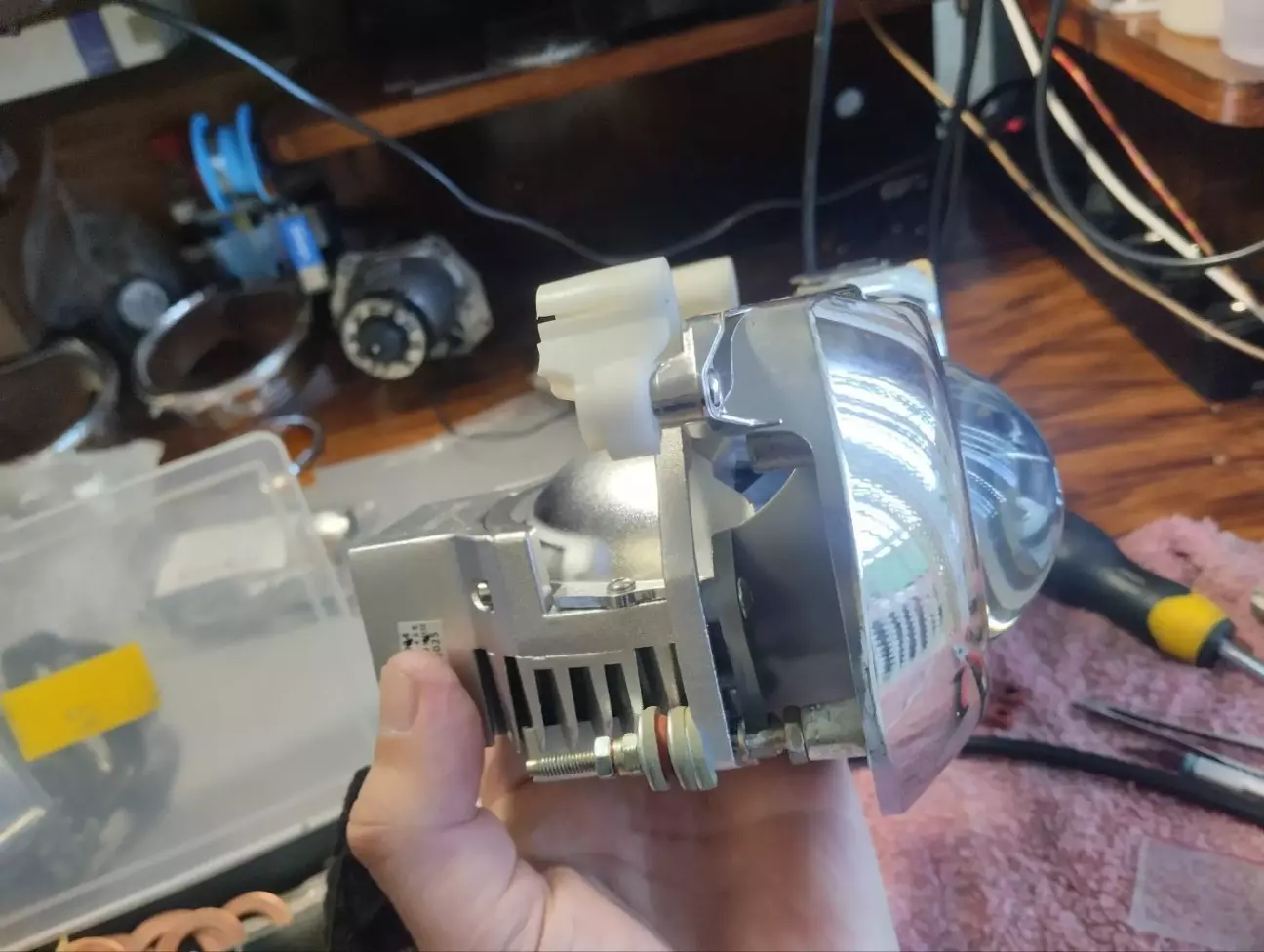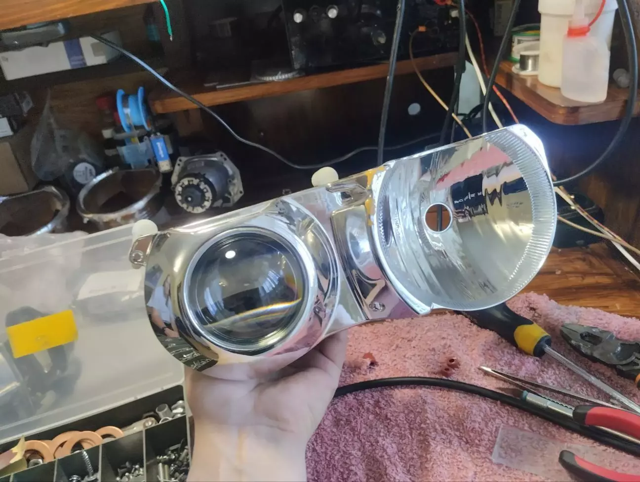 Збірка в зворотньому порядку на бутиловий шнур і нарешті повертаємо на авто оновлені фари.