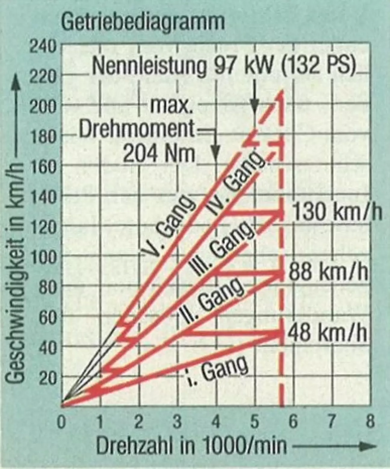 Чувствительная пятая точка, которую гонщики и раллисты любят называть важнейшим органом чувств при прощупывании предела, разумеется, сразу ощущает, что мотор, крутящийся максимум до 5400 об/мин, после 5000 оборотов становится вялым. Чувствует она и то, что на холостом ходу и при низких оборотах новый агрегат тарахтит скорее как подпольный, нежели как центрально расположенный двигатель; что после 3500 об/мин возникают вибрации, а после 4500 об/мин становятся слышны механические шумы.