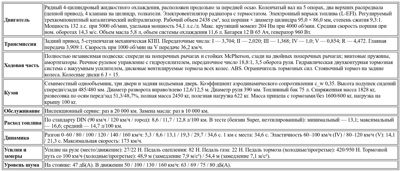 Настройка ходовой части также отрицает всякое родство с моторизованными рабочими лошадками. В целом подвеска кажется неожиданно плотной, и только передняя ось спотыкается на коротких волнах и поперечных стыках. Слабая энергоемкость на длинных пологих волнах также наводит на мысли о слишком коротких пружинах. Нейтральная управляемость под нагрузкой при смене циклов разгона и торможения дополняется теми повадками, которые иному отцу-яппи могут быть знакомы по эре владения среднемоторным спорткаром в холостяцкие годы: корма склонна к типичной избыточной поворачиваемости, а среднее по всем параметрам рулевое управление помогает выполнять недраматичные корректировки.