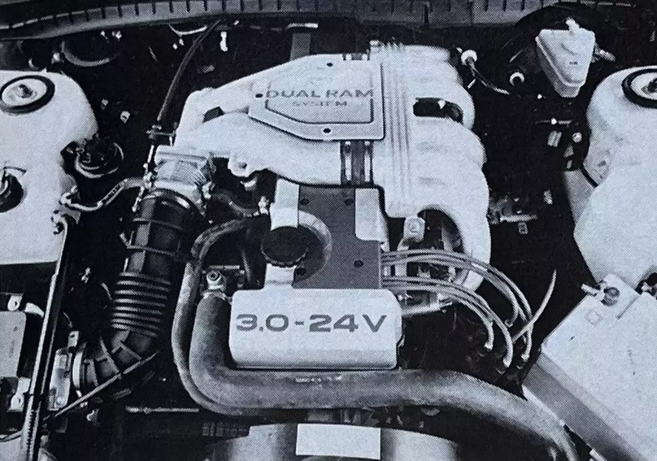 Этот новый мотор, безусловно, главная инновация нашего тестового автомобиля. Подробно описанный в номерах 930 и 932, он не требует детального перечисления всех доработок Omega. База двигателя далеко не нова: 24-клапанная головка покоится на блоке цилиндров, ведущем родословную еще со времен Kapitän и отличающемся короткоходной геометрией (95 x 69,8 мм). Поскольку структурная жесткость никогда не была его сильной стороной, инженеры применили жесткую связь с картером двигателя, выполненным из легкого сплава методом литья под давлением. Шатуны удлинены на 6 мм, а коленвал получил 12 противовесов для обеспечения плавности работы. Головка блока цилиндров достаточно компактна благодаря малому углу развала клапанов в 29°. Распредвал выпускных клапанов приводится напрямую от коленвала (посредством однорядной цепи), в то время как впускной распредвал приводится от выпускного через вторую цепь. Клапаны (диаметром 37 мм на впуске и 30 мм на выпуске) приводятся гидротолкателями.