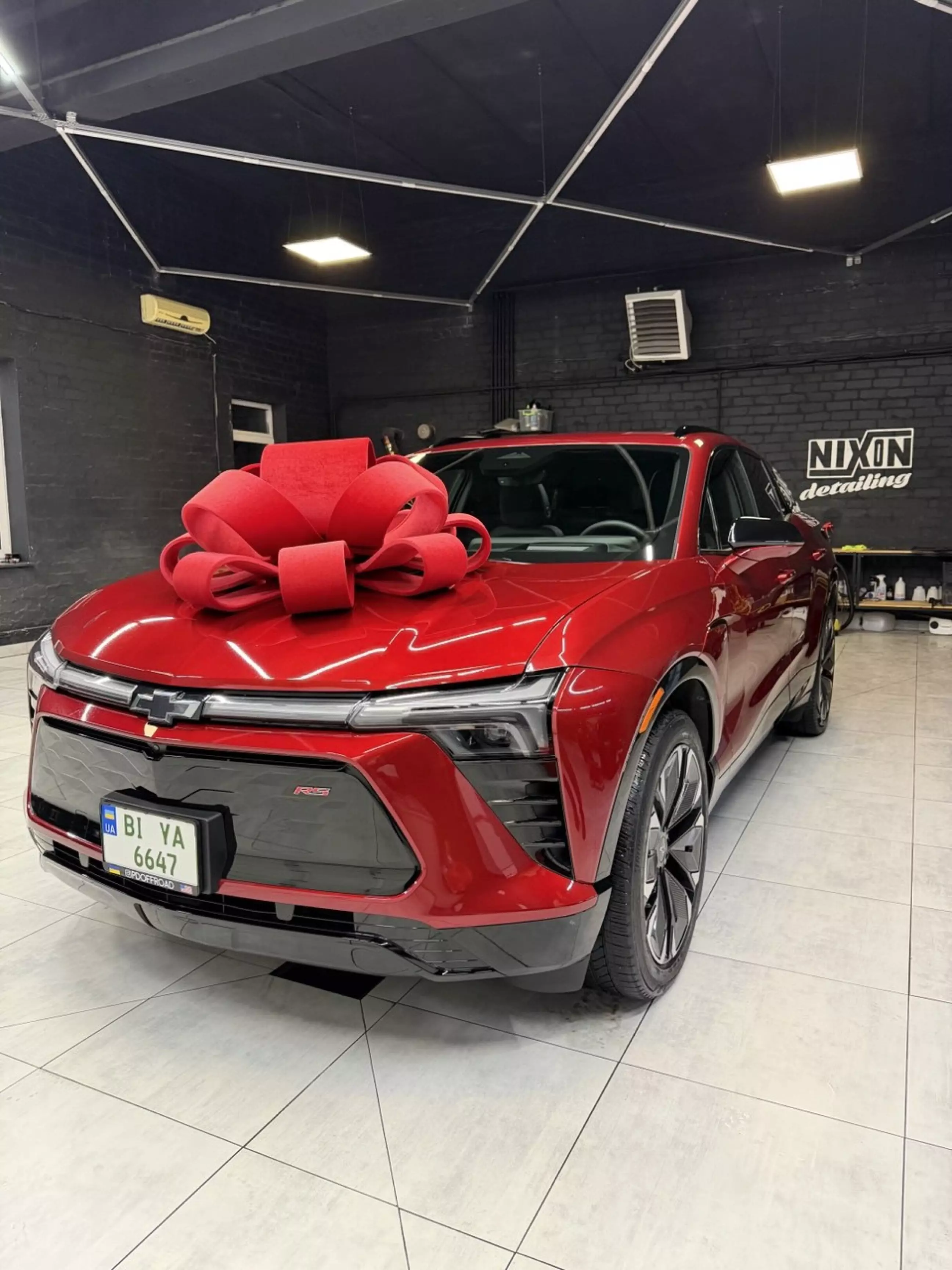 Історія тостера для мами, нараховує вже 3 автомобілі. Спочатку був Nissan Leaf 2019 року з батарейкою 30квт (в старій морді), на разі це Chevrolet Bolt 2017 в комплектації Premier куплений цілим на аукціоні Manheim. Але на Bolt вже 130к км+ і з 2026 року повертають розмитнення тостерів, було вирішено зробити їй сюрприз і замовити Chevrolet Blazer EV RS в крутому кольорі RADIANT RED TINTCOAT. Далі процес відновлення і вручення мамі.