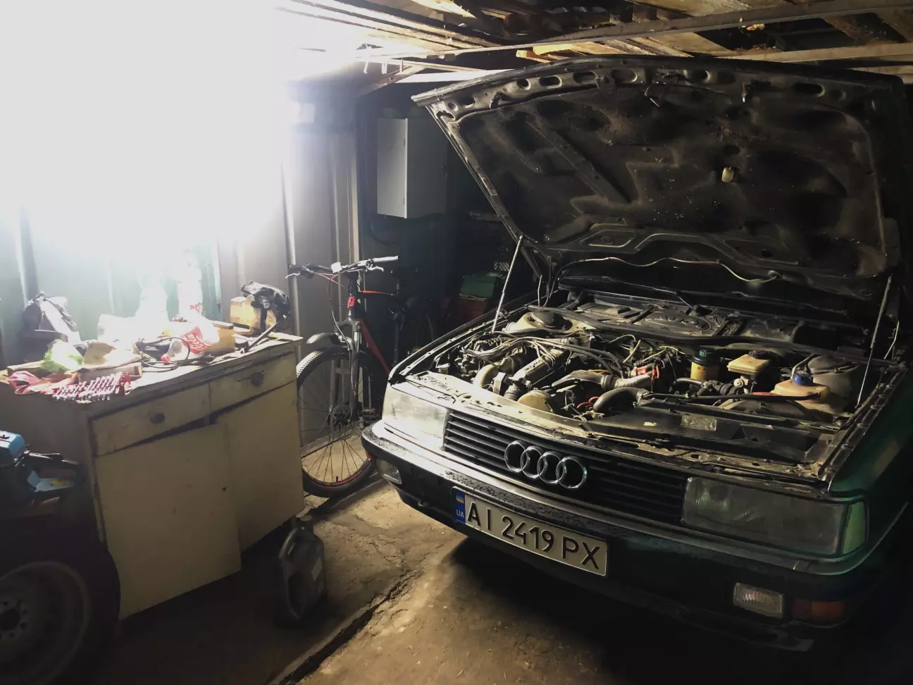 Машина із заводу в Нікерзульмі про що говорить її VIN-номер. Із заводу пофарбована у рідкісний колір LY7U/U8 (Steingrau Metalik). Колір використовувався в основному для автомобілів Porsche (911, 924, 944). У ті роки наносився на автомобілі Audi тільки як спецзамовлення і тільки з 1985 по 1989 роки, тому таких машин - одиниці. Живим прикладом використання цього кольору є автомобіль із Бондіани (The Living Daylights).
