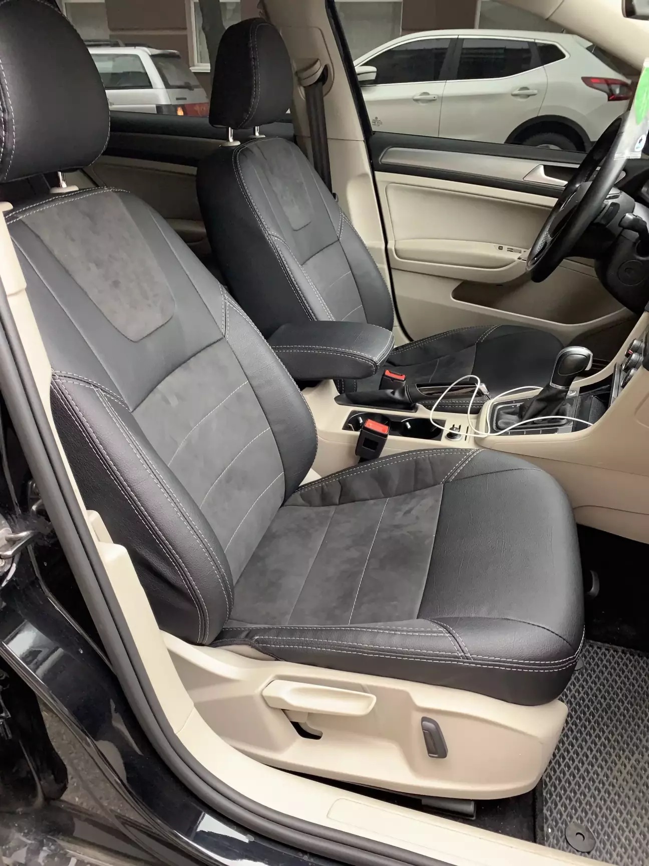 Виготовлені та встановлені, шкіряні з алькантарою чехли в сидіння.