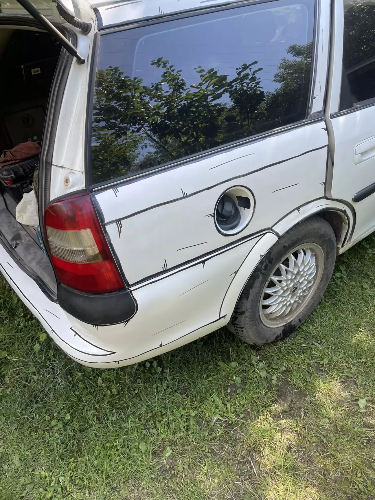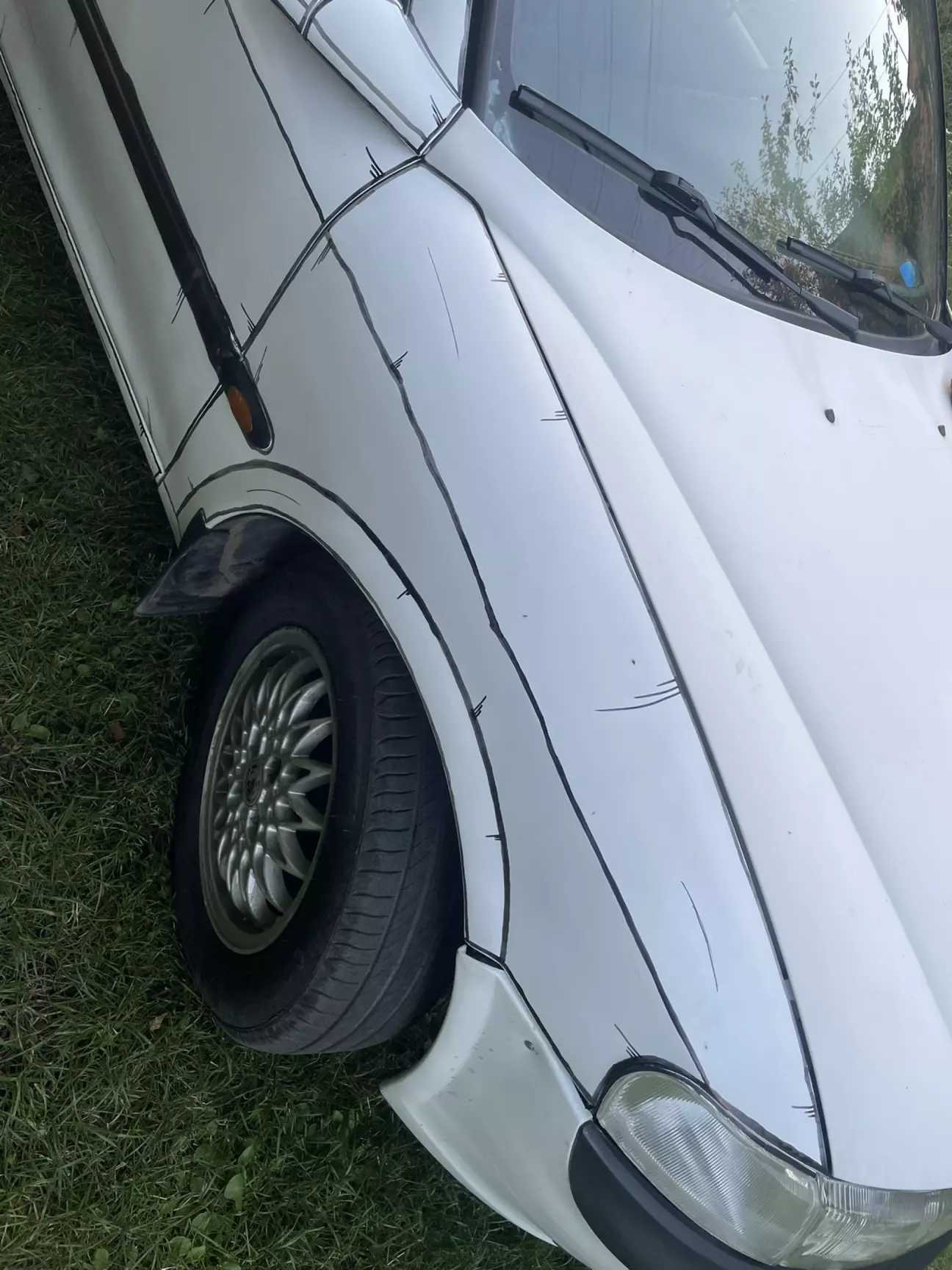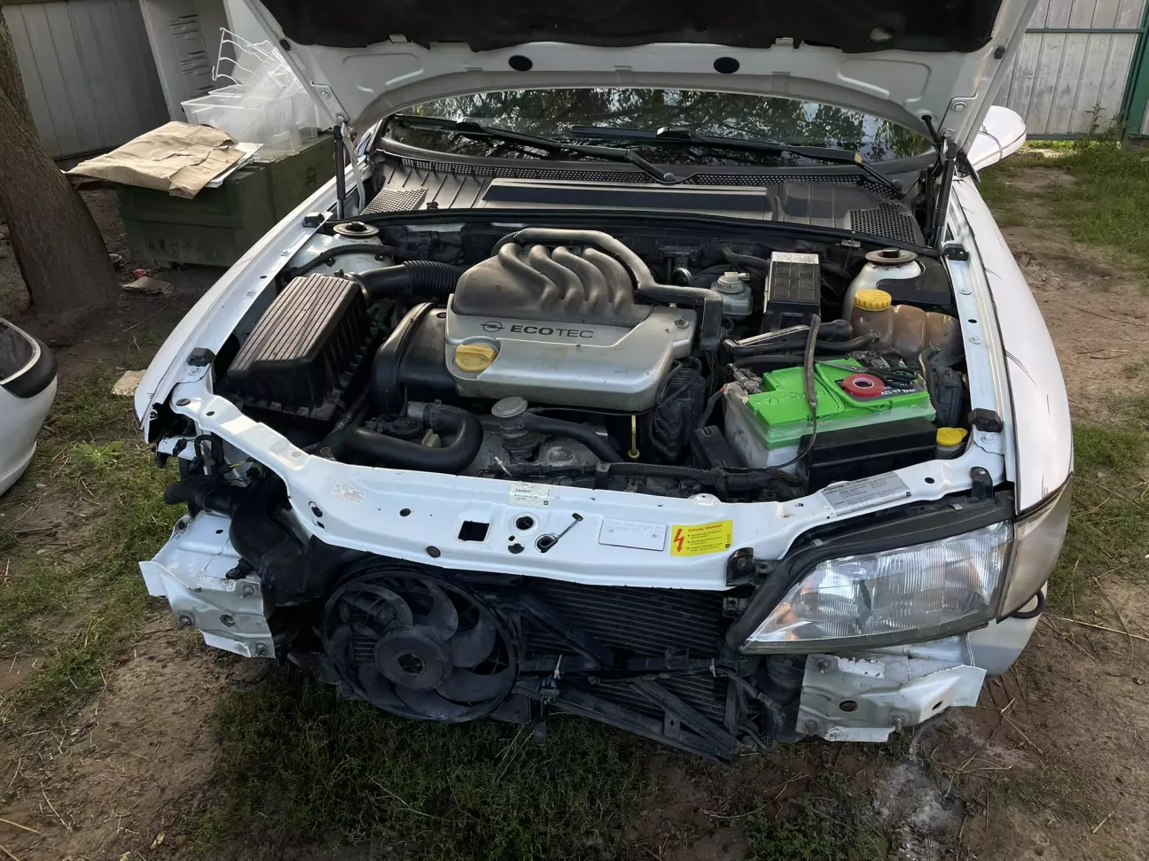 Вона була вдарена в район підсилювача де знаходиться радіатор. Коли температура повітря піднялась і почав спрацьовувати допоміжний вентилятор охолодження то під капотом з'явився "Карлсон", жужжав на всю вулицю. Макаджон попередній навіть не вирівняв той підсилювач і вентилятор зачіпав його... Після огляду я його намагався відстукати, але удар прийшов прямо на стик підсилювача, важко було вистукати ну і я його взагалі зняв. Бампер також пробував паяти але потім забив на то. Лишив як є.