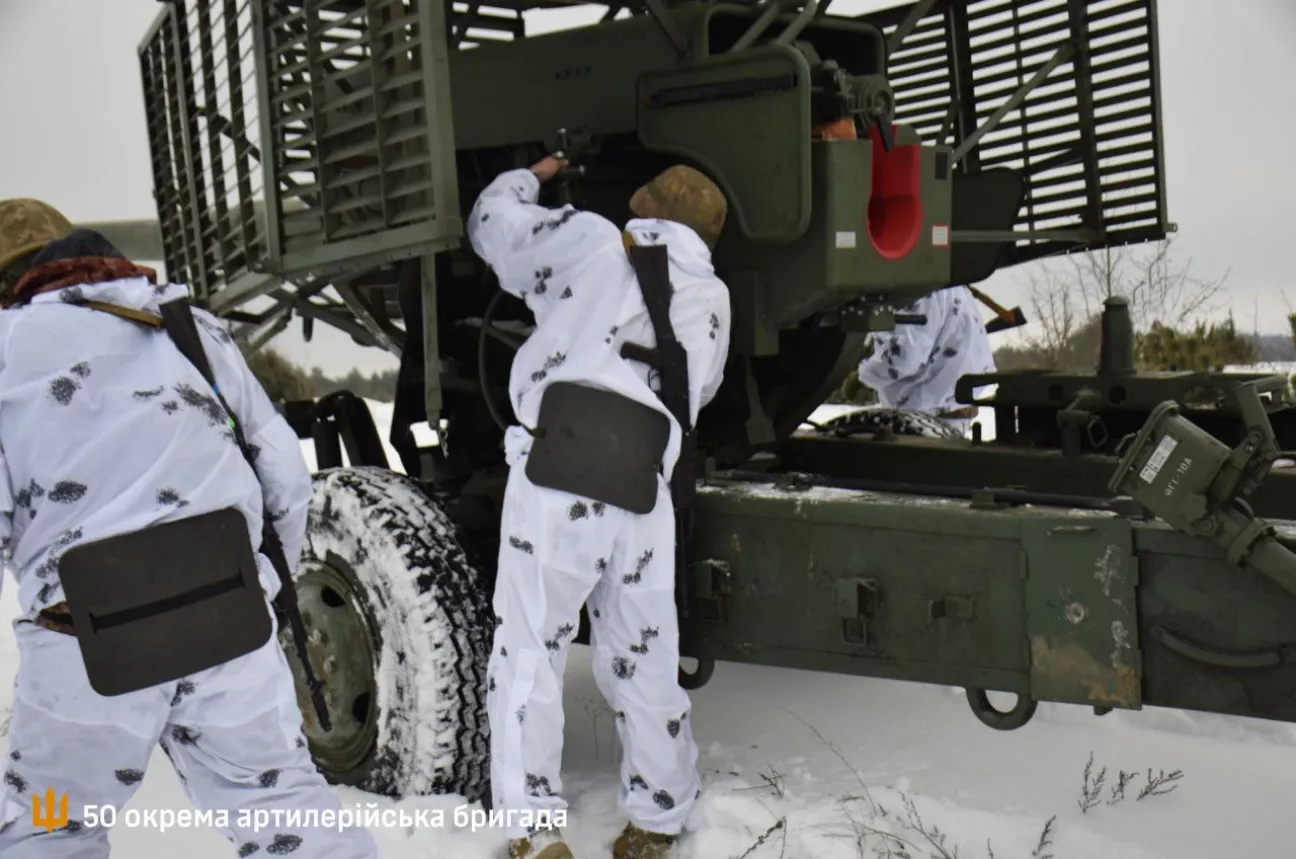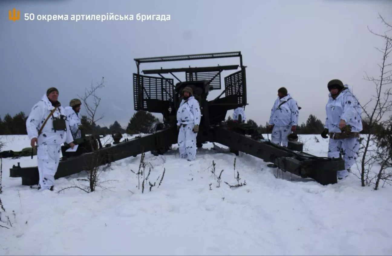 Вітчизняна 155-мм буксирована гаубиця 2П22 «Богдана-БГ» зі складу 50 оабр під час навчань. Увагу привертають «мангали» для захисту від дронів.