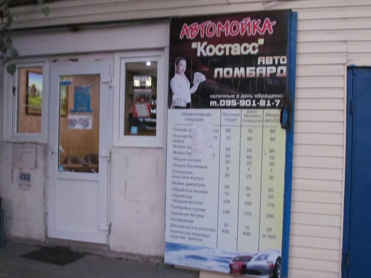 Автомойка "Час Пик' (в девичестве"Костасс").Пока моется ваш автомобиль в зале ожидания мягкие кресла с диваном, кондиционер,авто пресса,телевизор,wi-fi,летняя беседка, прохладительные напитки,мороженое,кофе,чай,автохимия и аксессуары.