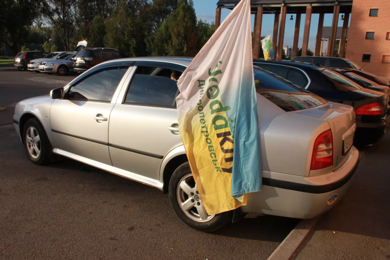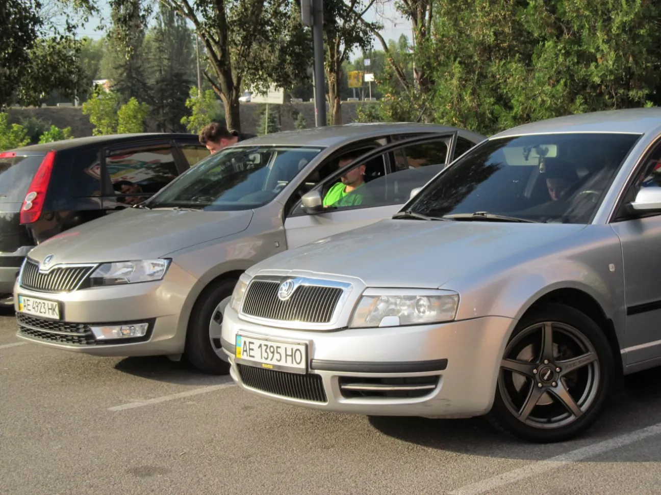 Мне пришлось машину переставить в другое место,так как там где я стоял приехал следующий "пациент с жалобами" и на новом месте меня ожидал сюрприз...припарковался в ряду с группой "Шкода Клуб Днепр"....