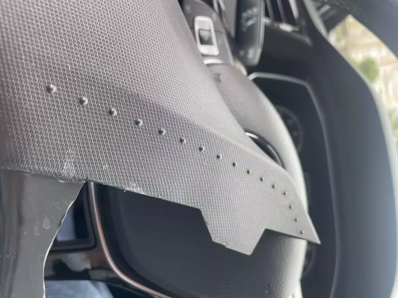 Акуратно знявши пластикову накладку виявилось що інженери продумали цей момент. В місцях доторку накладки з торпедою на накладці є бульбашки які саме і створюють мелодійний звук.