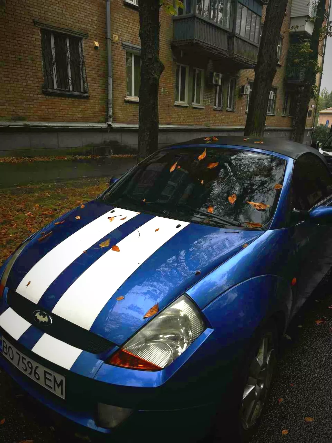 Ще окремий для мене кайф - колір авто: French Blue. Це яскравий відтінок, який вдало підкреслюють паралельні білі смуги вздовж усього кузова.