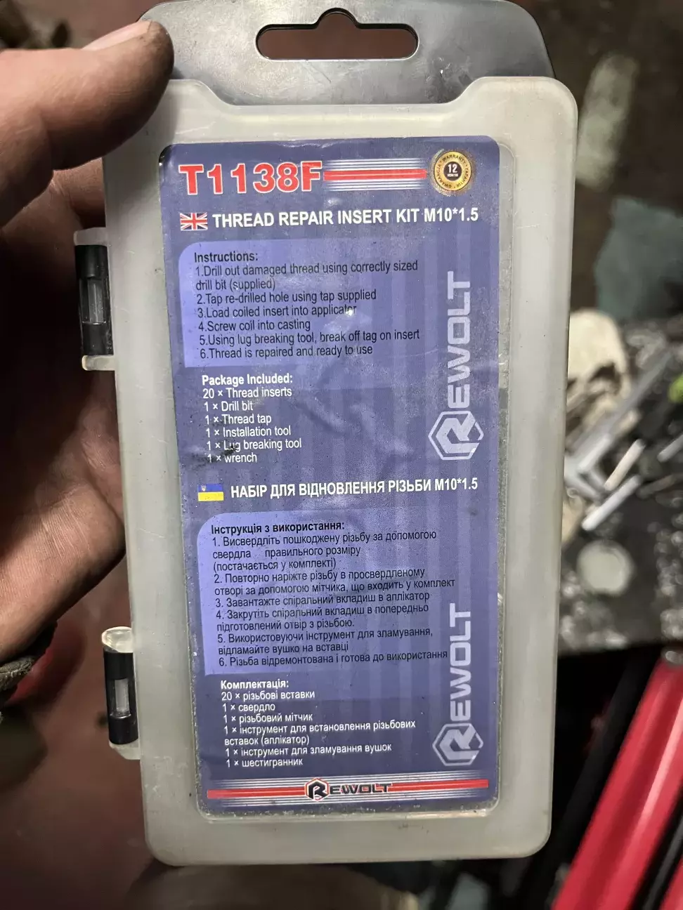 Тому було вирішено переробити різьбу на М10×1.5. Для цього я придбав набір для відновлення різьби.