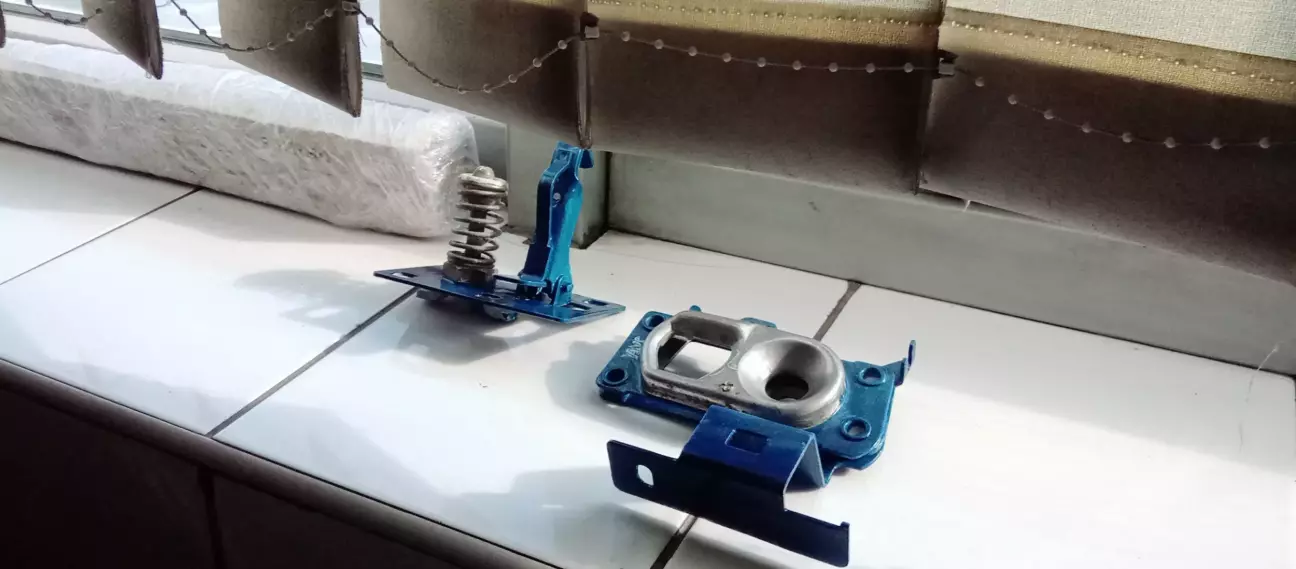 Захотілось привести до ладу детальки моторного відсіку і не тільки) Почав з деталей замків, кронштейників та стронгер - який купив з продажу старого каталізатору) До речі - візьміть на замітку) Все чухалось руцями та наждаком) Надихався старою стружкою, грязукою та лаком з фарбами. На фотках замки, кріплення та стронгер