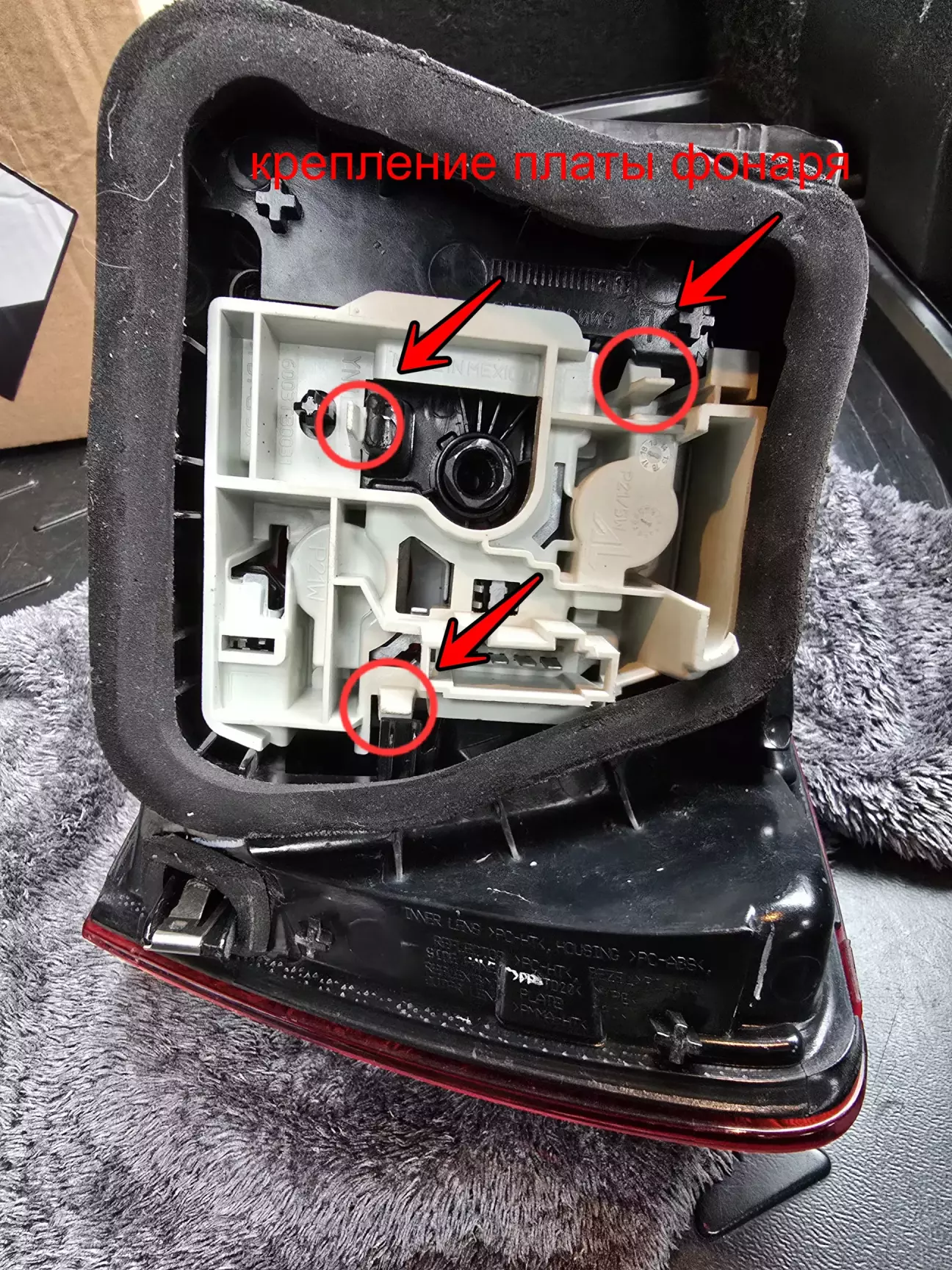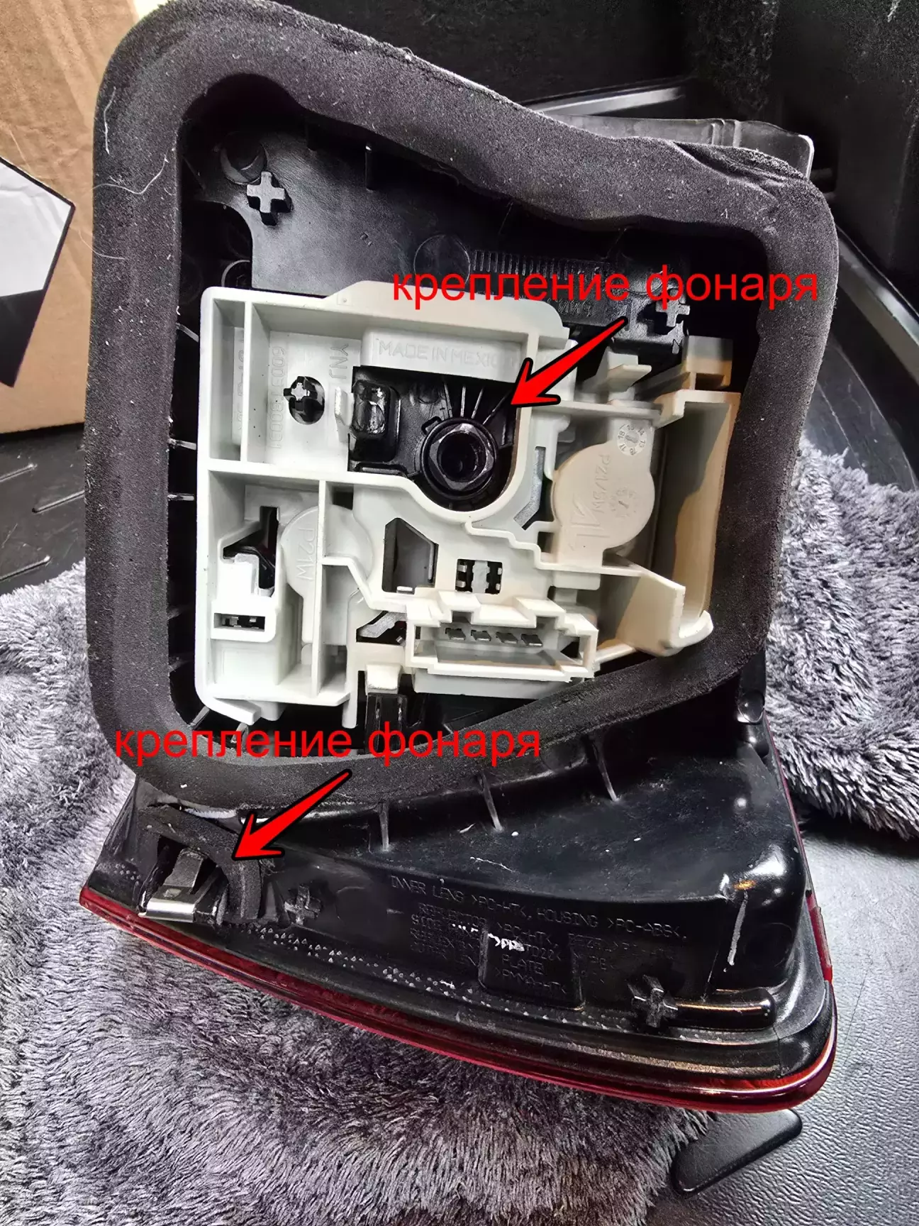 На фото видно у меня один фиксатор на правом фонаре был сломан.