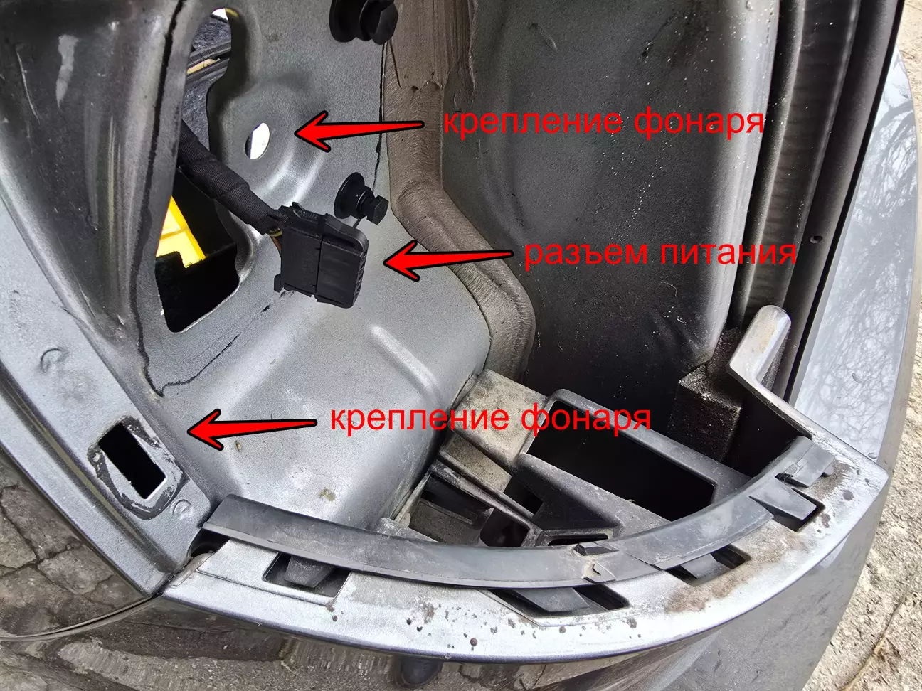 Отсоединяем питание на задний фонарь .