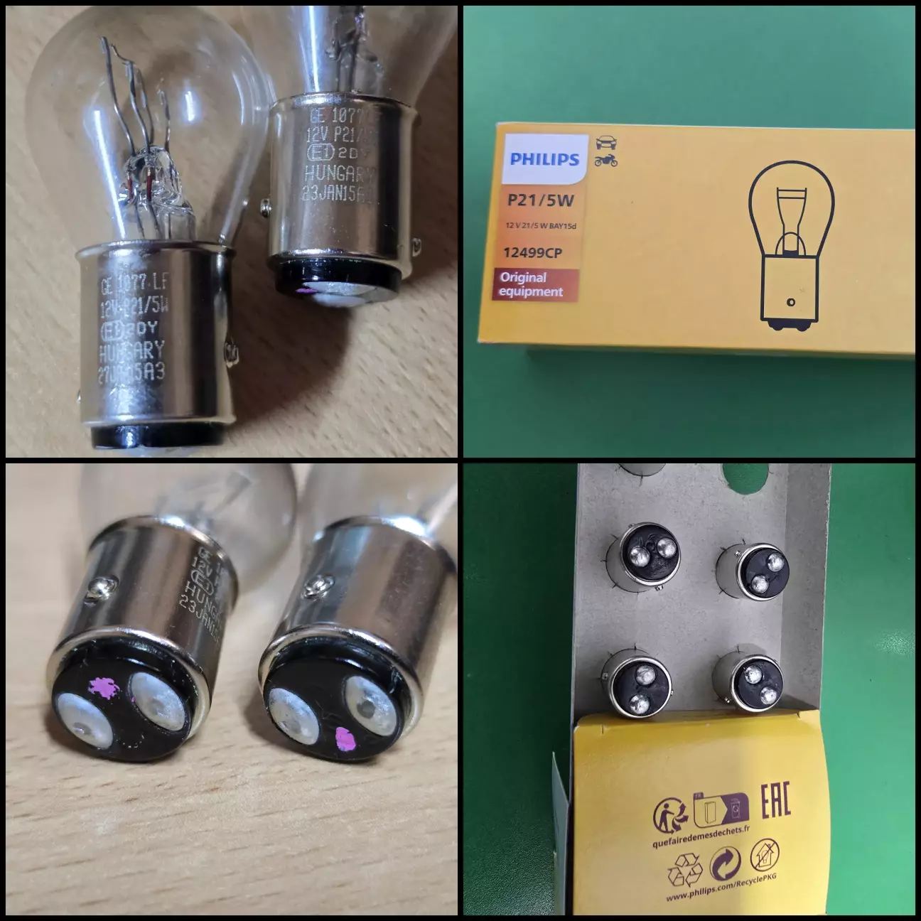 В оригинале стоят лампы General Electric GE 1077 LF P21/5W