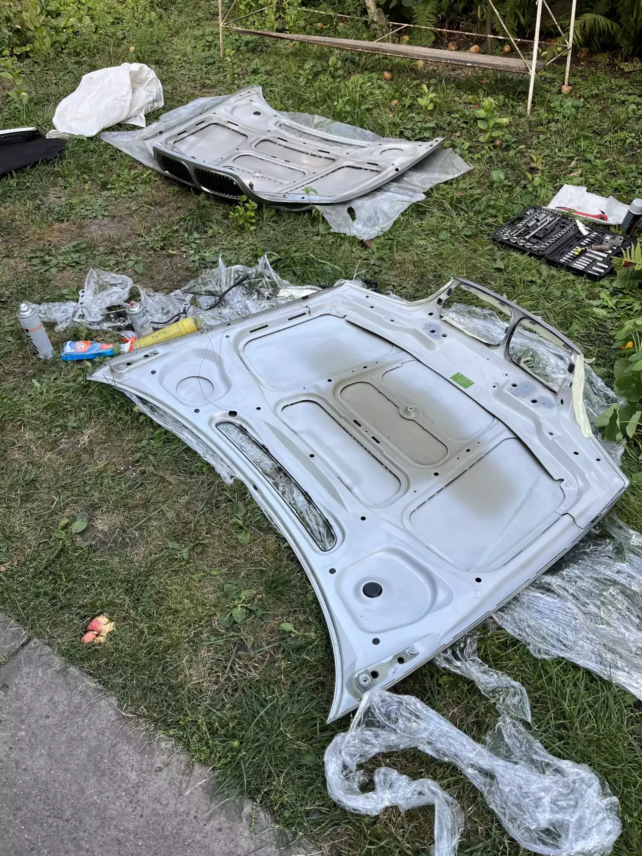 Варіантів було два, забити і кататись поки не буде гірше і тоді міняти. Або ж шукати цілий капот, бажано в колір (зі срібним це не так важко зробити), а свій продати поки цілий. Когось такий стан теж зацікавить.