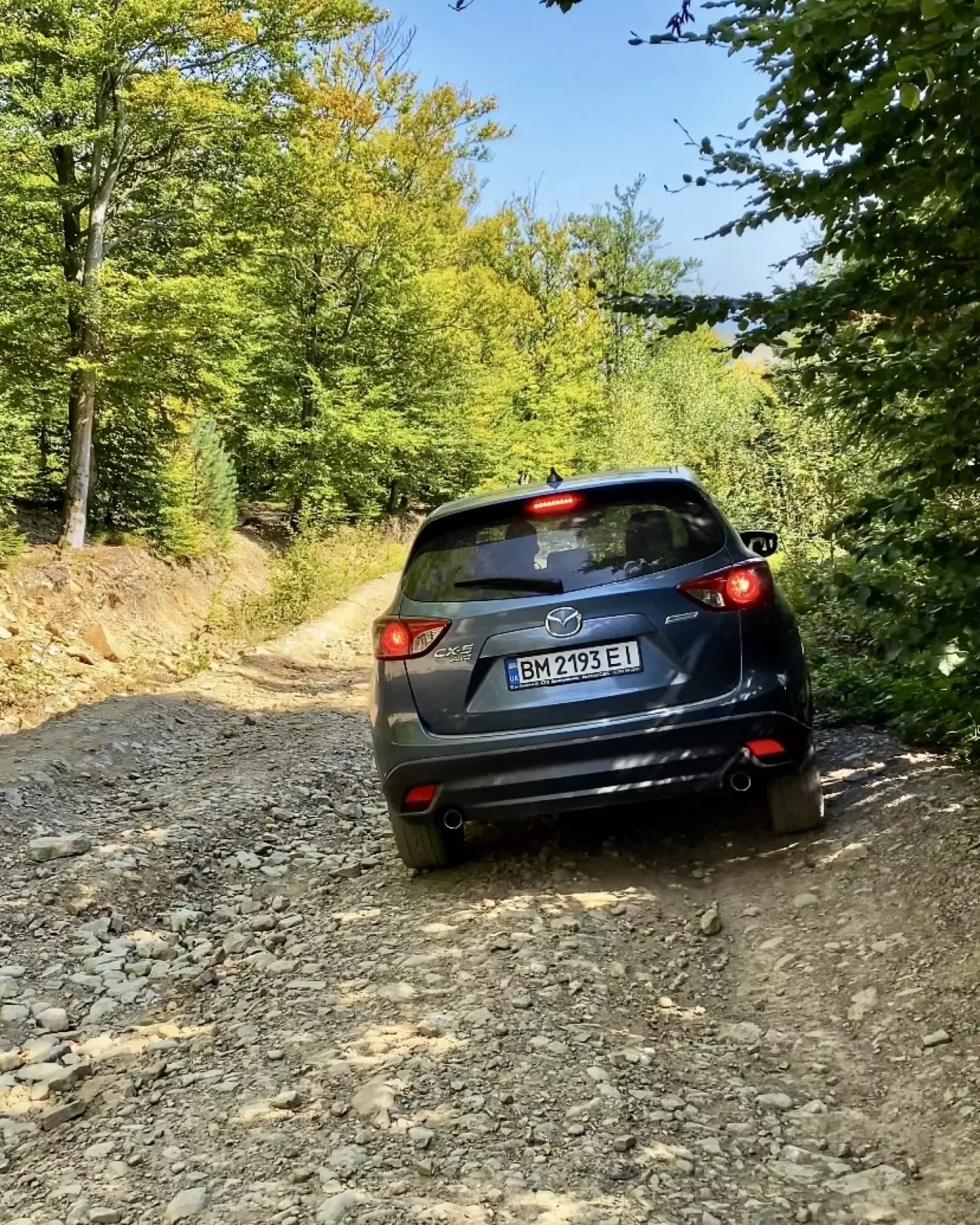 В кінці серпня була необхідність їхати у відрядження в західні області. Було прийнято рішення після вирішених справ заїхати з дружиною в Карпати на декілька днів. Мешкали вже другий рік поспіль в тому самому котеджі в селищі Славське. В проміжку між дерунами з грибами і грибною юшкою ходили в гори. А одного дня навіть вирішили поїхати, і потрапили на лісову дорогу де їздять лісовози і ліфтовані ниви. Мазда була трохи шокована, але гідно пройшла випробування бездоріжжям.