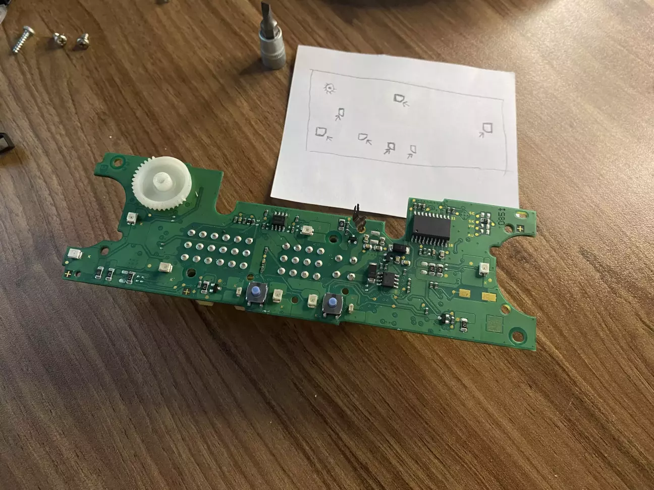 12 основних світлодіодів білого кольору, які підсвічують приборну панель і 2 червоних окремо для поворотів, бо залишати зелені не хотілось. Тонкий паяльник, флюс, припой і викрутка TORX T8 для розборки.