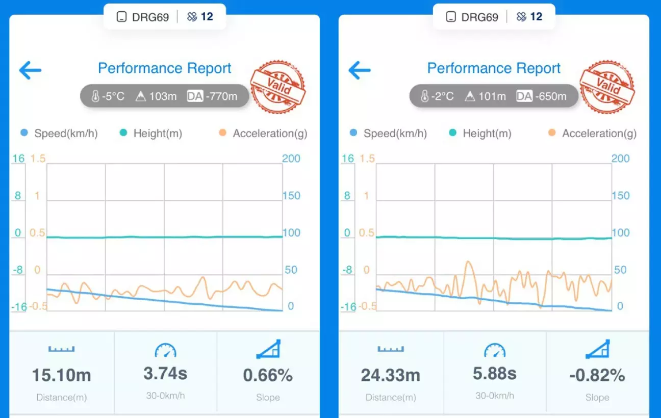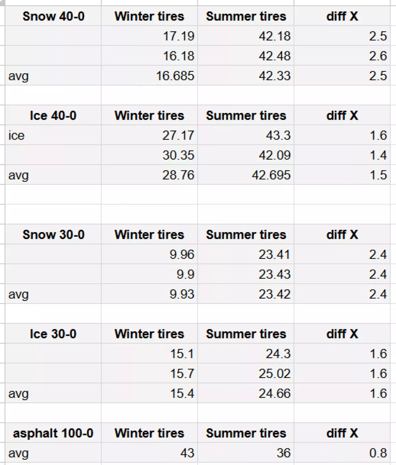 При переходе к замерам 40–0 разница между летней и зимней резиной сохраняется, результат стабильный.