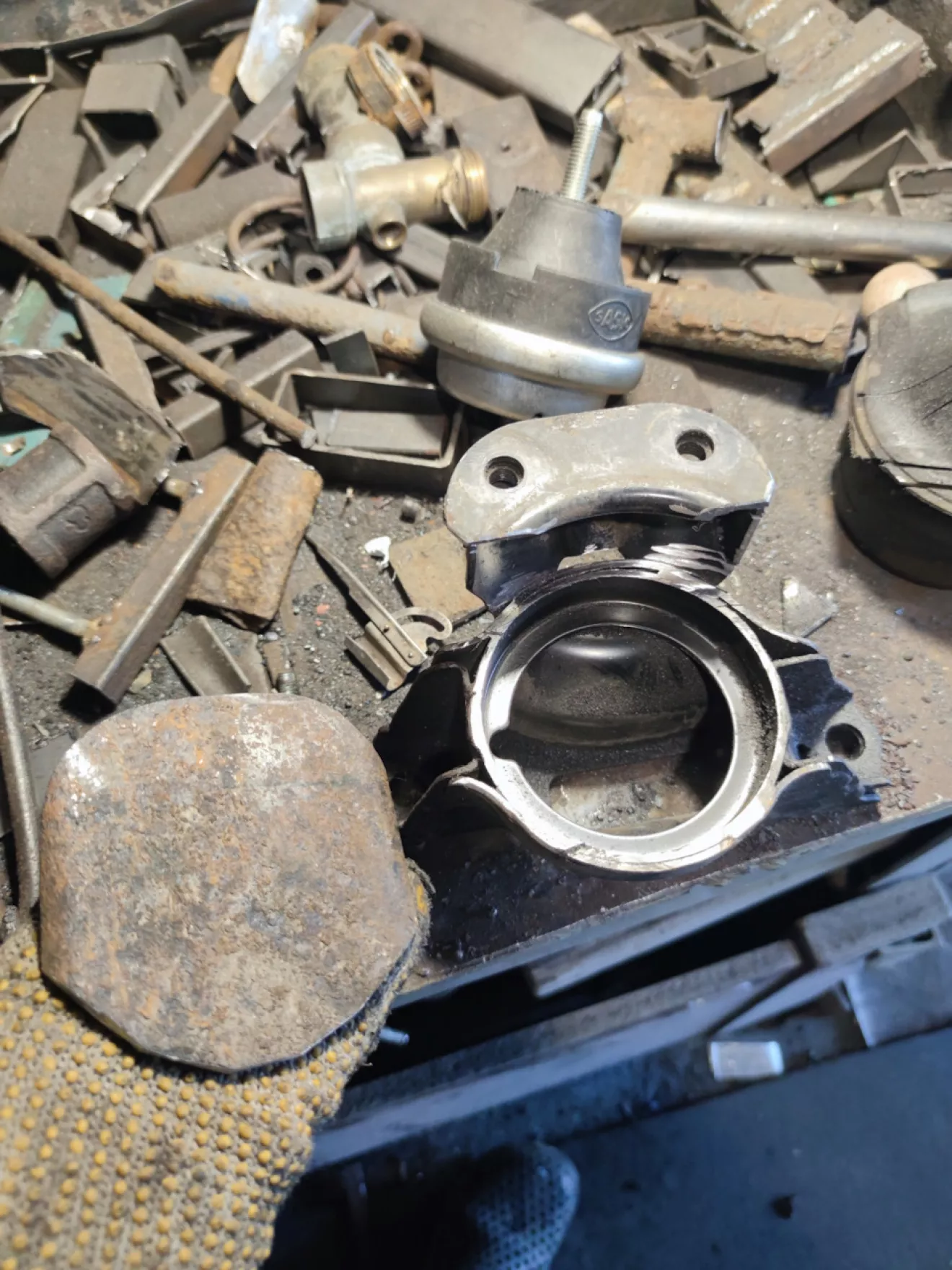 а) берем штатную гидроопору и вырезаем с нее саму подушку и чашу в которой она находится. Для этого нам понадобится болгарка.
