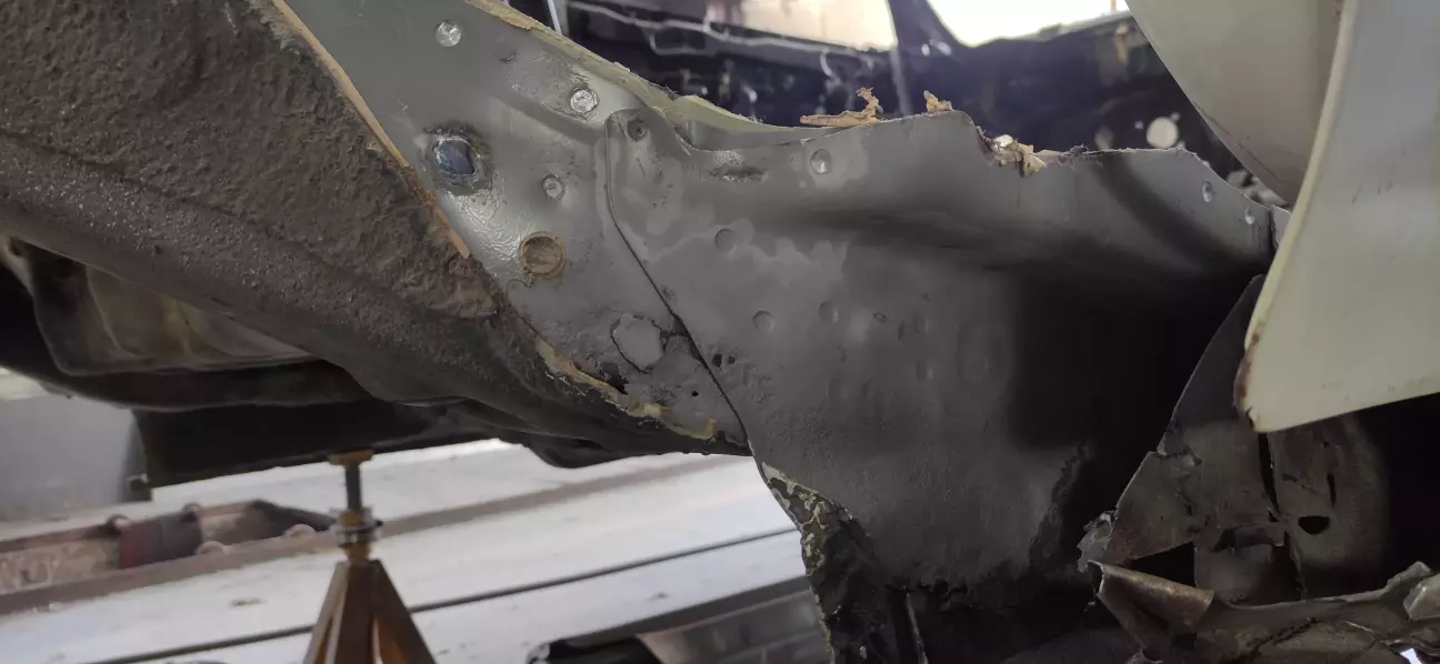 Всім привіт. І так, виставив кузов по горизонту лазерним рівнем, на регульованих підставках. Почав відсвердлювати всі пошкоджені деформацією та корозією елементи кузова.