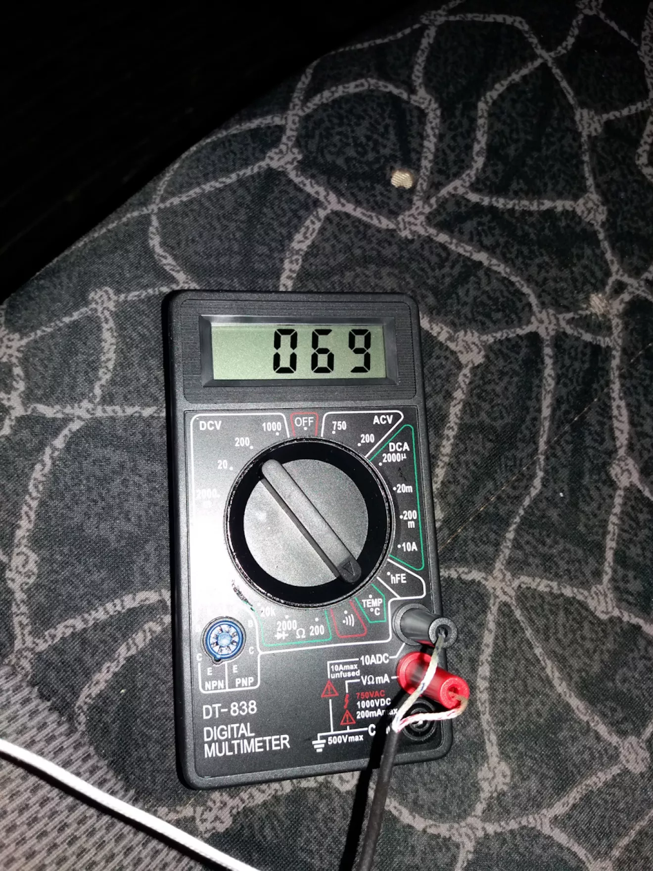 Сегодня замерил температуру выходящего воздуха из печки.Забор с улицы, обдув в салон, датчик в воздуховод вставил.Первая скорость вентилятора 73 градуса