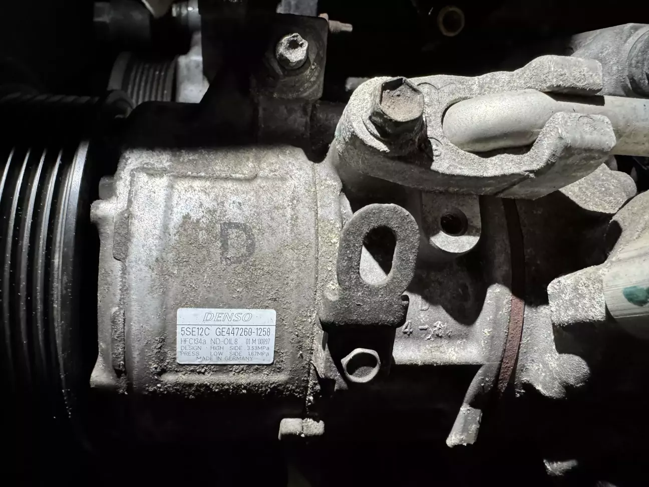 Що сподобалось майстру — це те, що конденсатор саме від Denso. Він одразу звернув увагу на гумові ковпачки й пояснив, що це важливо. У дешевших варіантах вони зазвичай пластикові. Коли він знімав ковпачки, було чути звук вакууму. Також він підтвердив, що я правильно зробив, замінивши його, бо при пошкоджених сотах виникає додаткове навантаження на компресор.