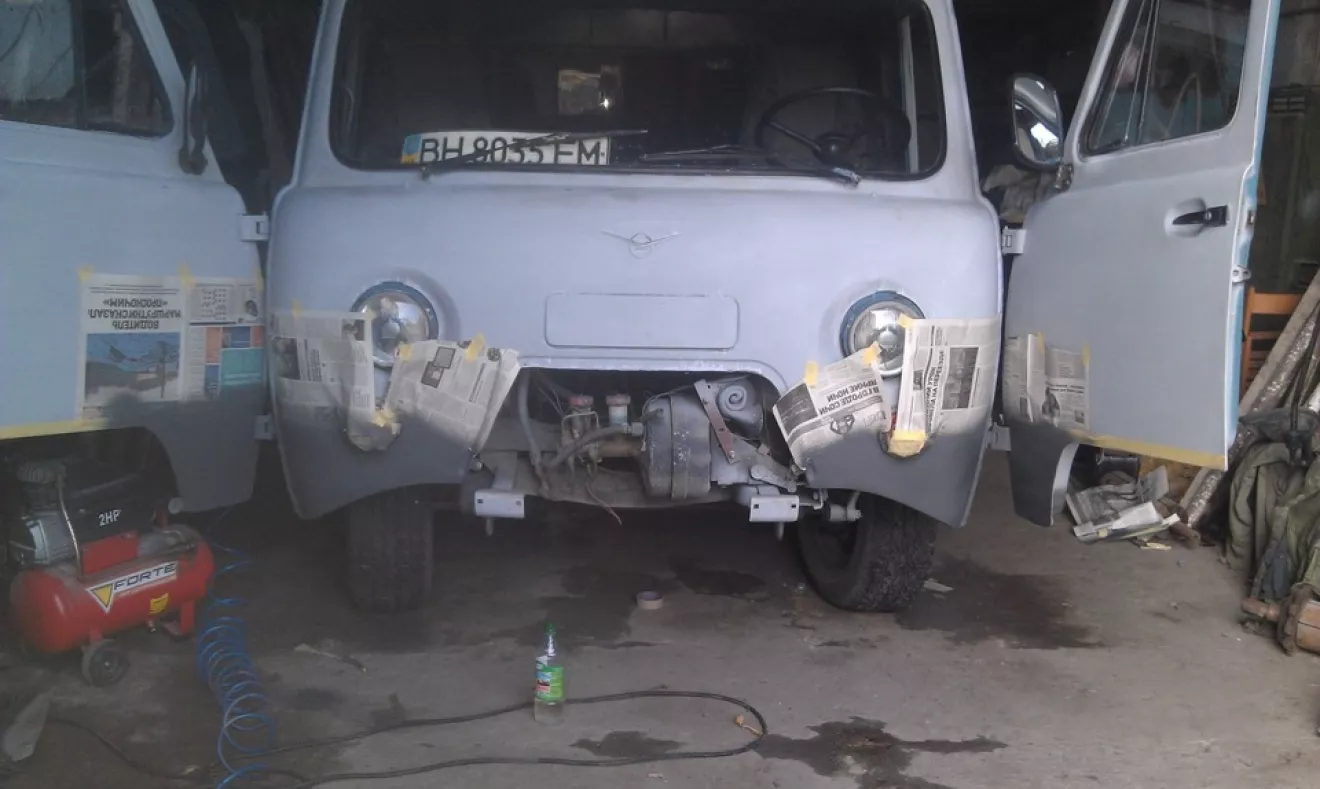 Наконец то покрасился, краску взял синтетику чтоб не сильно накладно было и не так жалко по лесам кататься, цвет выбрал Хаки(303), красил сам для этого купил много мелочевки для этого, компрессор одолжил у приятелей, перед покраской юбку сделал Гравитексом, как задули пошли домой а на след.день пошел любоваться результатом, есть немного потеков но мне для первого раза простительно.Уже после этого были на охоте и на рыбалке, уже успел поцарапать новое ЛКП)))но в планах пока покраска в камуфляж, думаю что все изъяны перекрою другим цветом. Извените за качество, цена материалов меня удивляет с каждым днем, за грунтовку отдал около 500 гривен вместе с растворителями на саму краску немного больше 500 вместе со всем, расхлды на ленты и мелочевку не учитываю.
