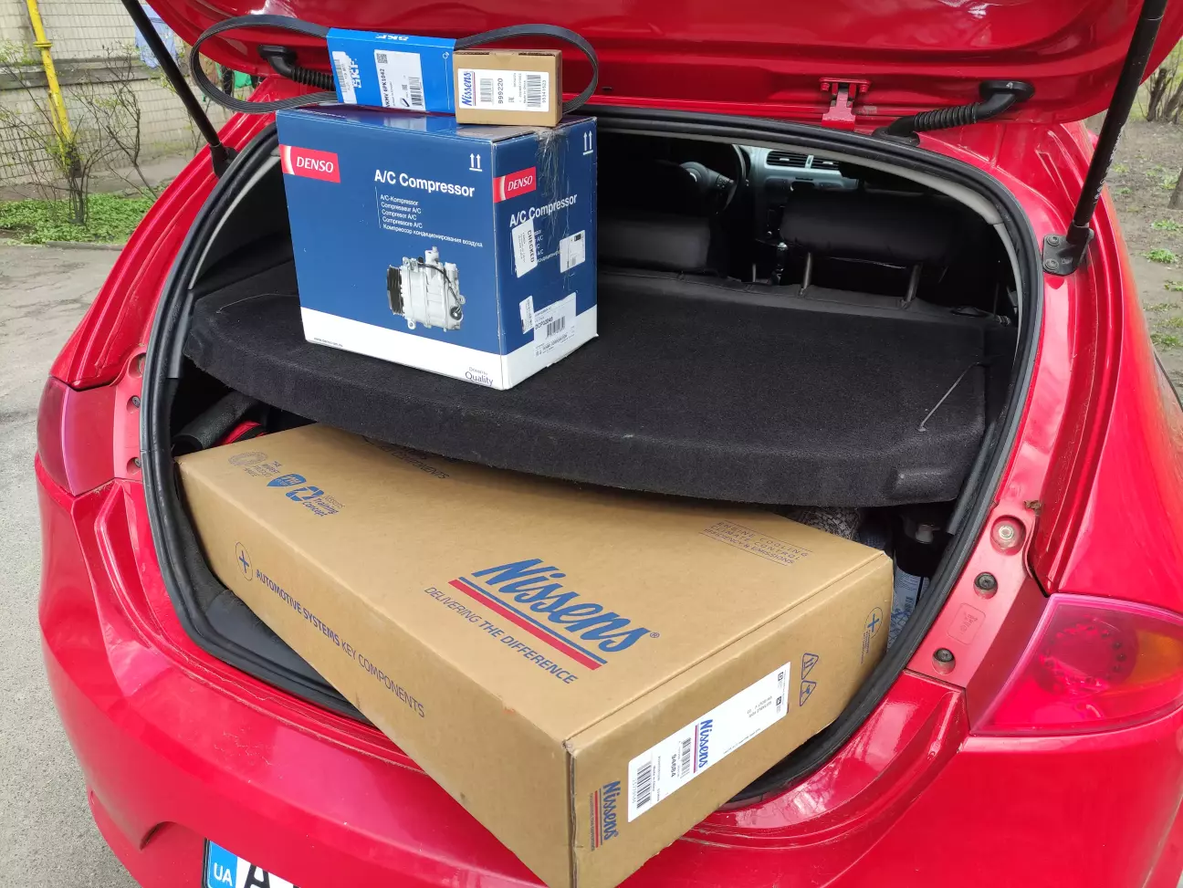 Назбиравши необхідну суму та підібравши необхідні деталі, весною 2025 поїхав Леон на ремонт кондиціонера. Ціни на послуги ремонту варіювались дуже сильно, від 12к до 18к. Найбільш, як на мене, адекватну ціну я знайшов в прайсі на сайті сто Генстар - "від 10к", по тел сказали що так і буде, ну може більше але до 12к точно )