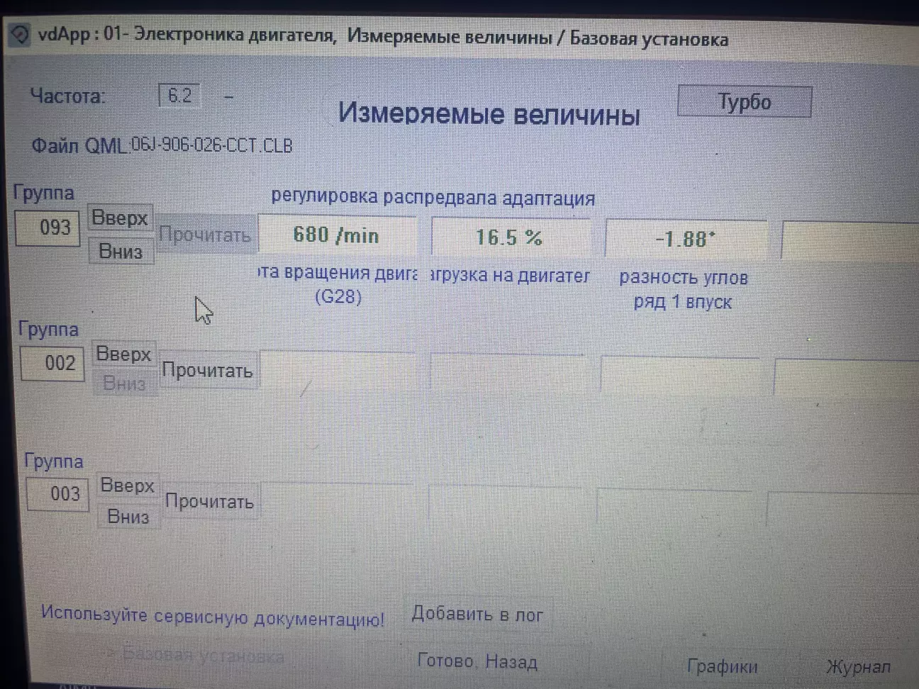 Одним вечором чисто випадково із сусідом заглянули у 93 групу на моєму тігуані. І там я побачив корекцію кута в -5,21. Це дуже насторожило, та здивувало. Тому, що цепка уже замінювалась на 120тис км.