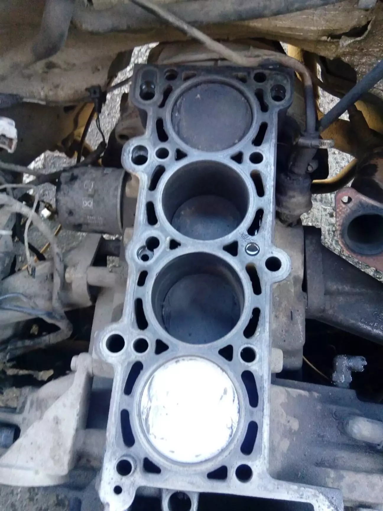 Розборка показало шо шось відпало в циліндр і побило поршень, і головку, але це інородне тіло не знайшли. В середині цилиндру все в нагарі, маслі.