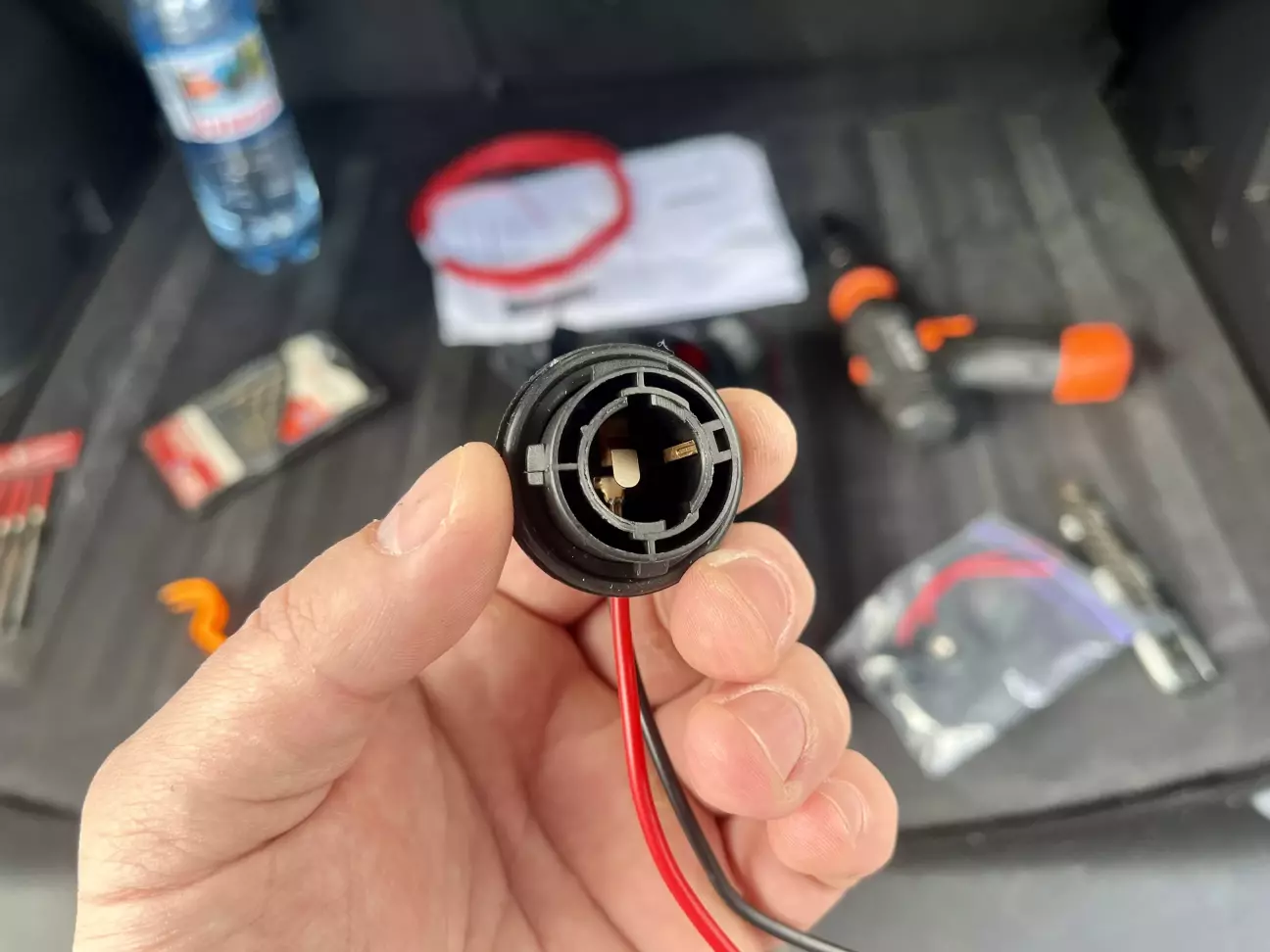 Так, добре. Що ми маємо? Відрізали червоний поворотник, він же стоп- сигнал, підключили патрон жовтого: