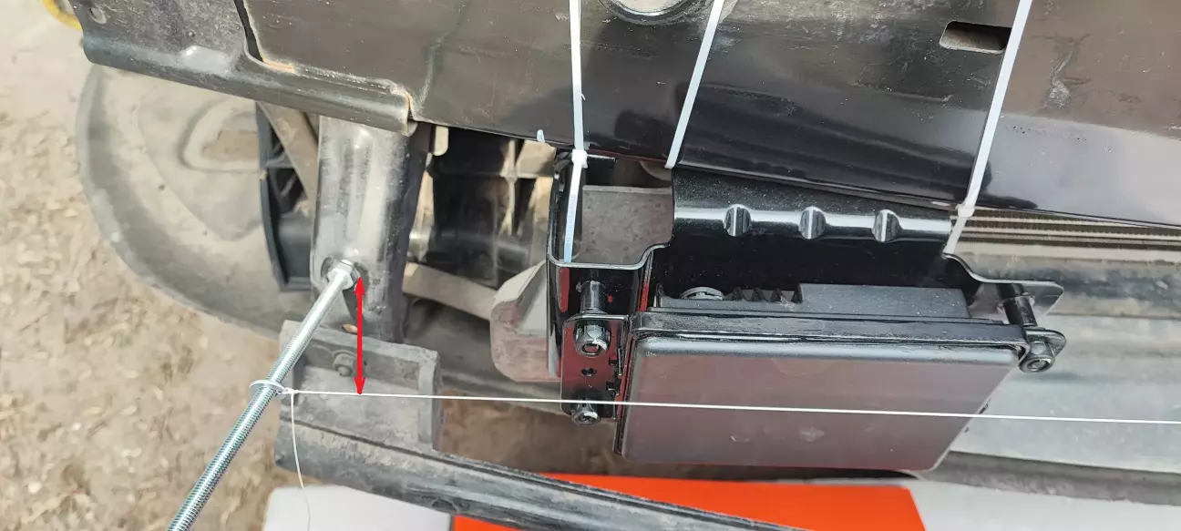 З обох боків переміщенням шайб по різьбовому стержню виставляю однакове значення перпендикуляру від нитки до підсилювача бамперу