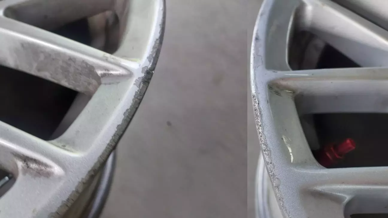 Після того як кузов пішов у роботу, гріх було не зачепити й диски. Усі чотири були рівні, без викривлень чи серйозних ударів, але мали бордюрки - сліди років на дорогах. Один із дисків мав глибше пошкодження на кромці - схоже на хороший дотик до бордюру. І тут, повірите чи ні, але за весь мій водійський стаж я жодного разу не чіпляв колесом бордюр. Частина царапок була на дисках при покупці, але додатково обмежувач, який сидить на передньому пасажирському й має власні права - спрацював. Що поробиш. Зате по-чесному - тепер вона офіційно спонсор реставрації того самого бордюрного тапка. Реабілітована 😅
