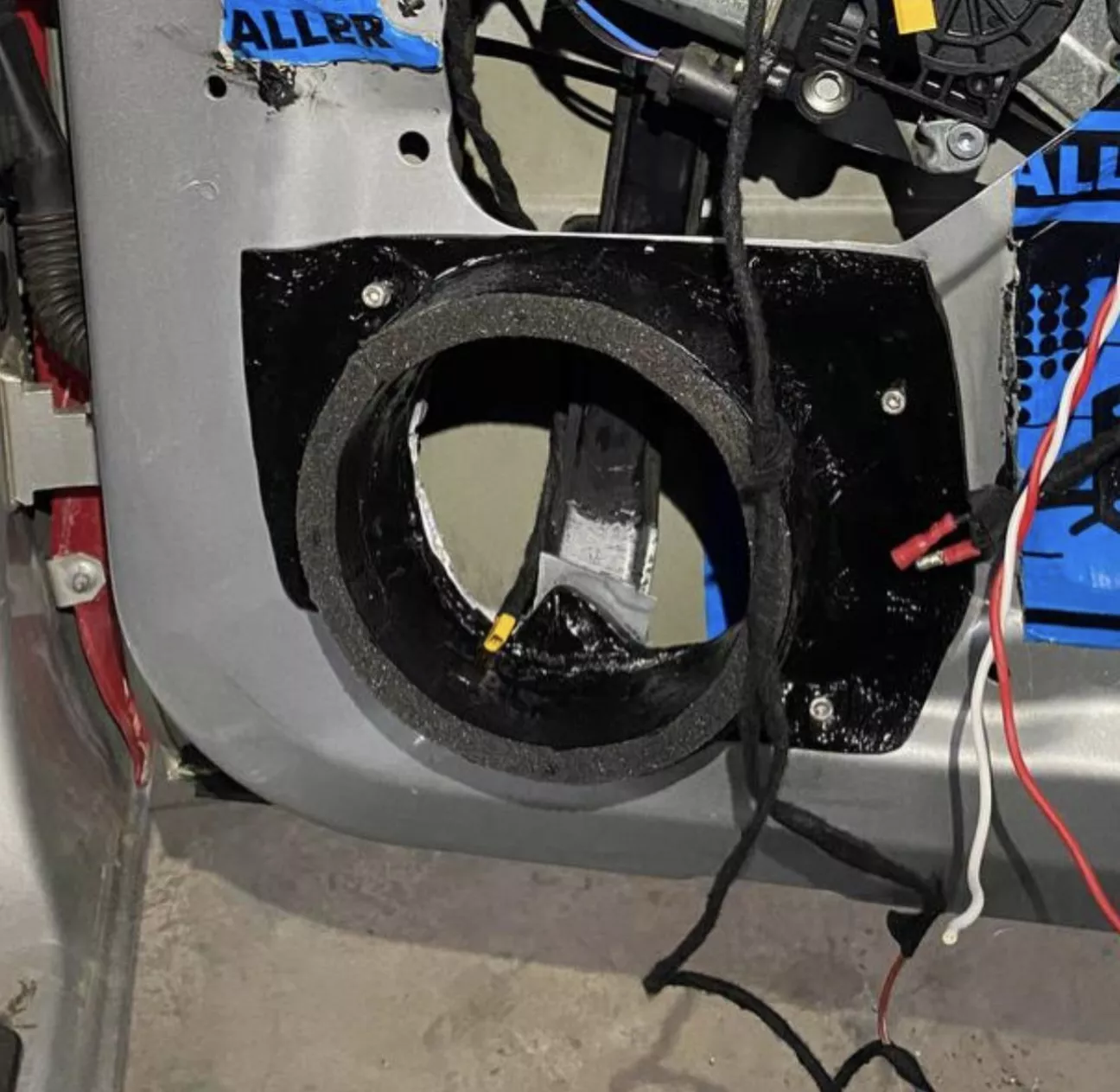 - Нове місце під акустику було створене з нуля. Складність полягала в тому, що динаміки на купешці кріпляться на карту, а для правильного звуку їх краще ставити на двері (з їх жорсткістю і об'ємом). Так і зробили, але виліз нюанс з кріпленням склопідйомника - воно трохи диктує які динаміки помістяться. Наразі поставили Phoenix Gold SX6CS, гляну як себе покажуть. ВЧ стали в штатні місця. (фото не буде, бо в салоні все виглядає як і було)
