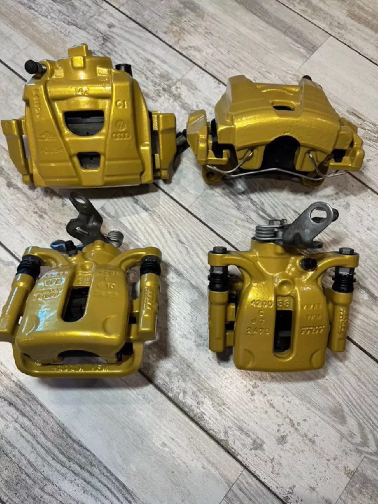 Але в один прекрасний вечір на сходці ваговодів адмін vw2usa запропонував мені привабливу ідею - викупити супорта з пассата 3.6. 15 хвилин роздумів і погодився на експеримент. Мої роздуми відштовхувались від значно меньшого бюджету ніж на 340 і від того факту, що не тількі перед збільшиться з 288 до 312, але й ще й зад. Був зроблений повний ребілд з покрасом паном brake_systems_master. Самі супорти були в ідеалі, потрібно було докупити тільки скоби.