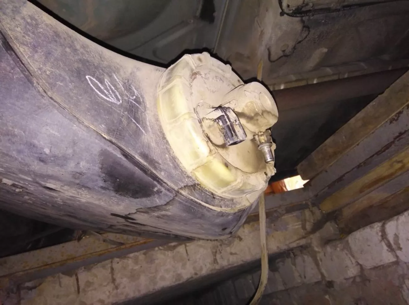 Открутил с помощью деревяшки и молотка крепежное кольцо насосной станции