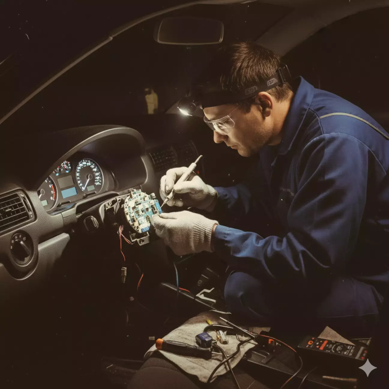 Ходив я ходив, тай вирішив пересвітити приборку в біле, бо зрозумів, що стоковий синій мене вже запарив, плюс хотілося внести нотку сучасності в Бората. Тому зконектився з @Sub-Sound , бо до пайки на платах в мене приблизно така ситуація "мама, зліпи мені сніжку". Узгодивши час, я під'їхав та й стартонули. Зайняло це десь 1,5 години, бо Олесь запропонував пересвітити ще й клімат, я і подумав " а чому і ні?".