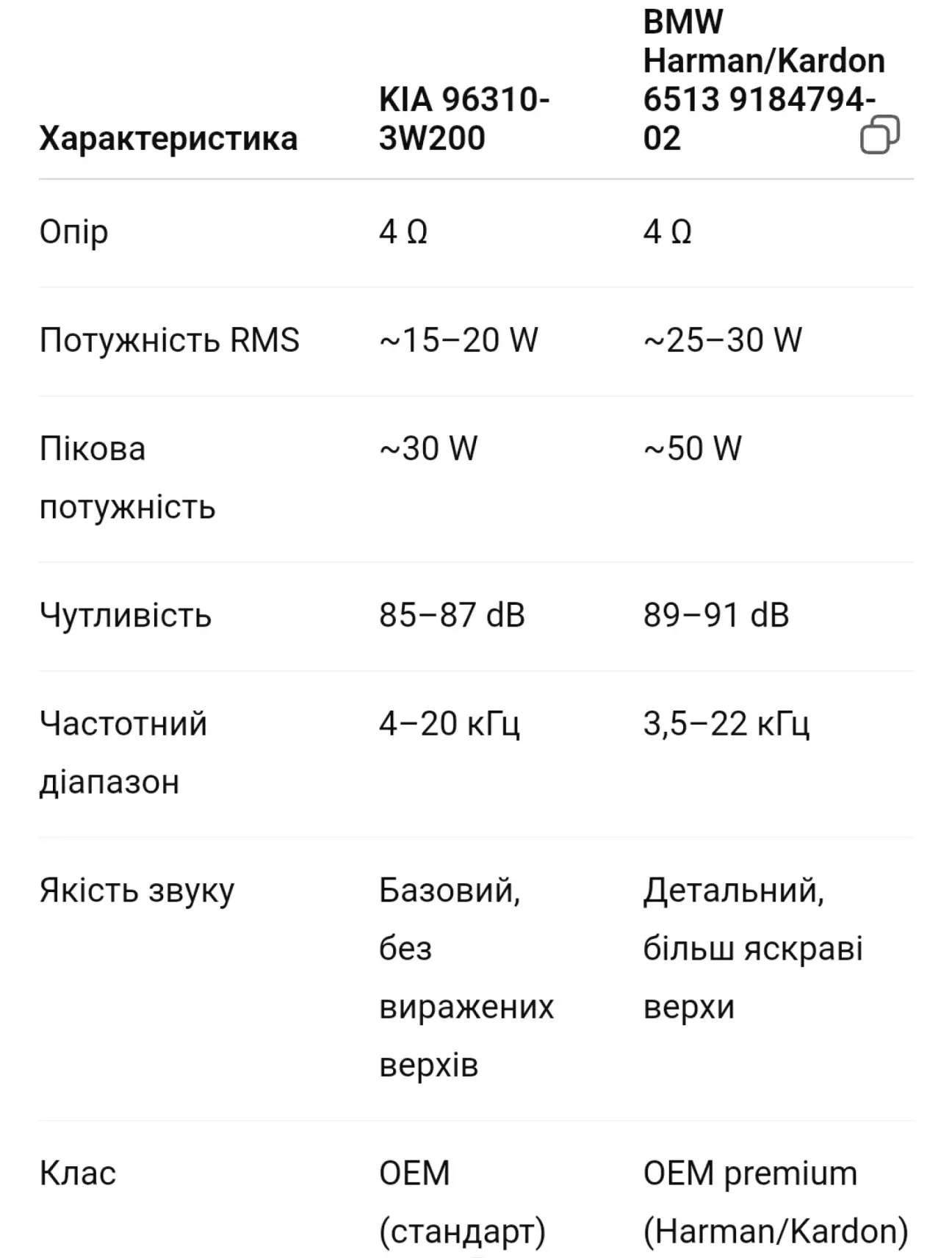 Підключив. Для порівняння відео якості звуку: сток KIA та Harman Kardon (BMW).