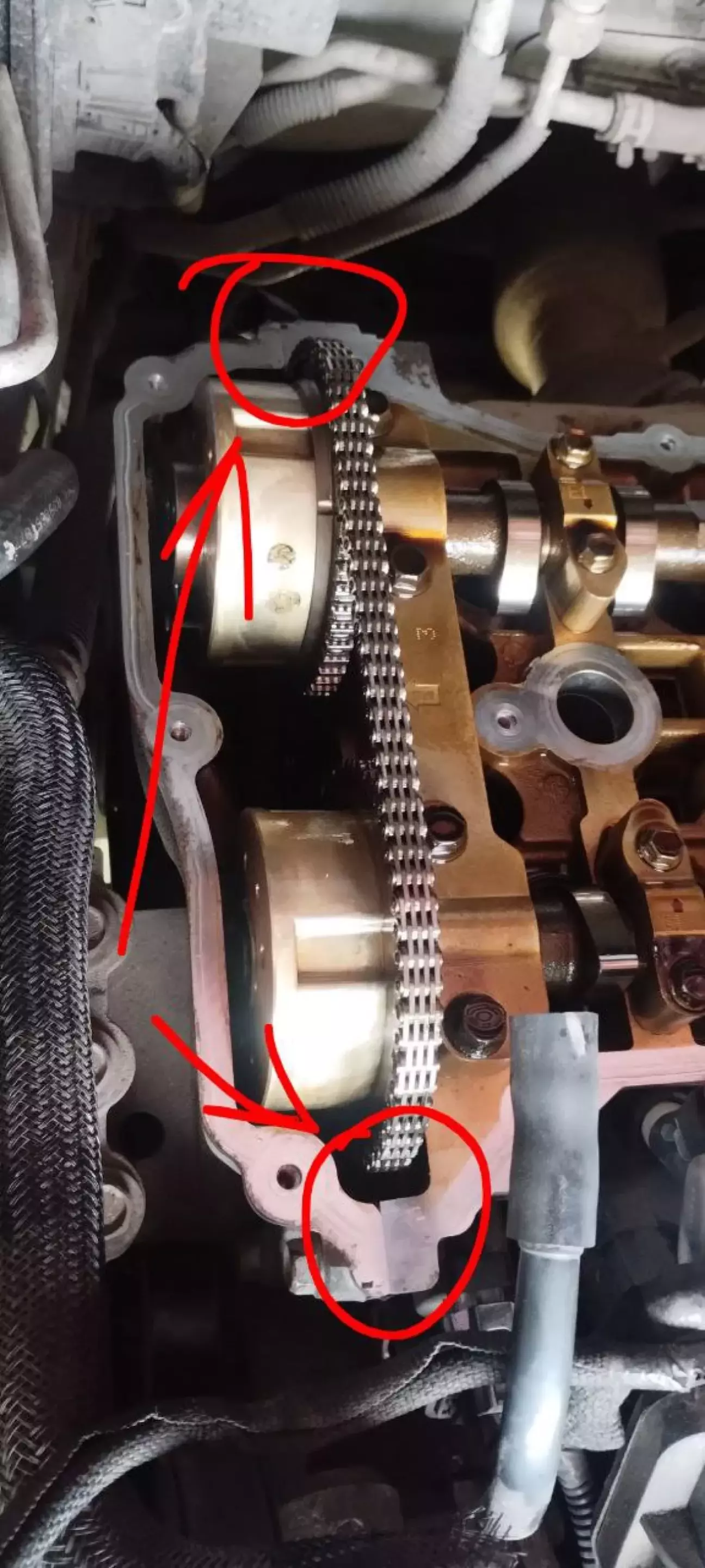 Де обведено червоним по правильному треба по каплі герметика, бо там стик кришки і ГБЦ.