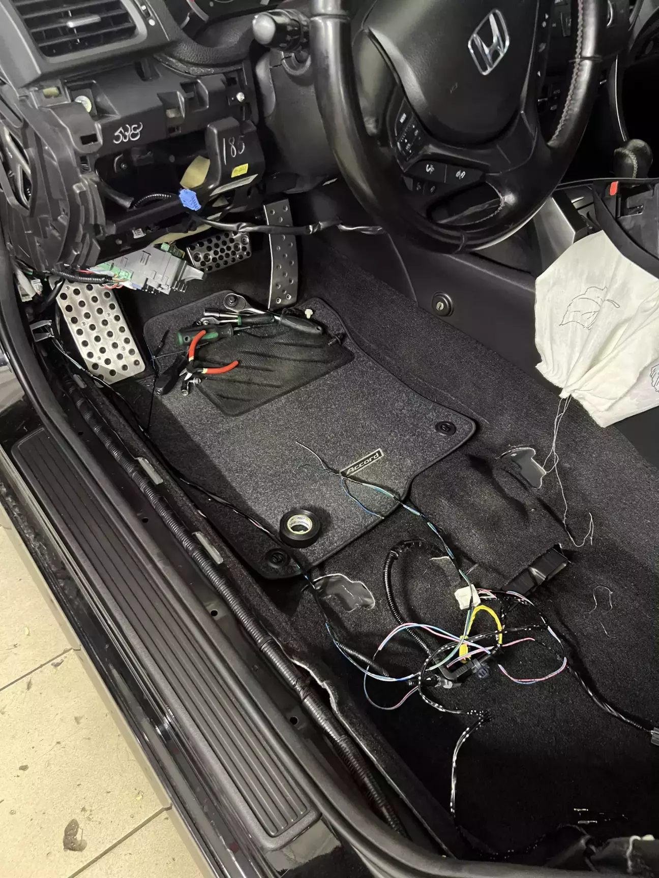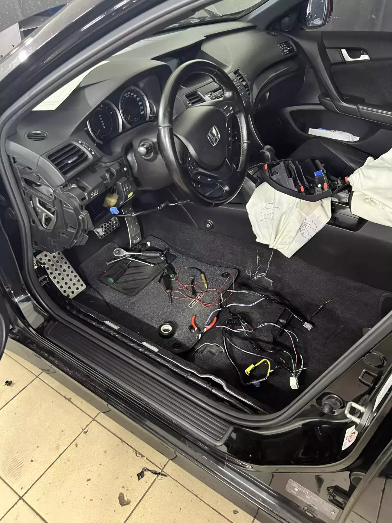Електрику були дані всі необхідні запчастини у вигляді всієї необхідної донорської проводки, нових пінів білої фішки сидіння, замовлених заздалегідь на AliExpress. Схемою підключення від Acura TSX допоміг @OdesaHonda, таким чином я був повністю підготовлений, маючи роздруковану на кольоровому принтері схему.