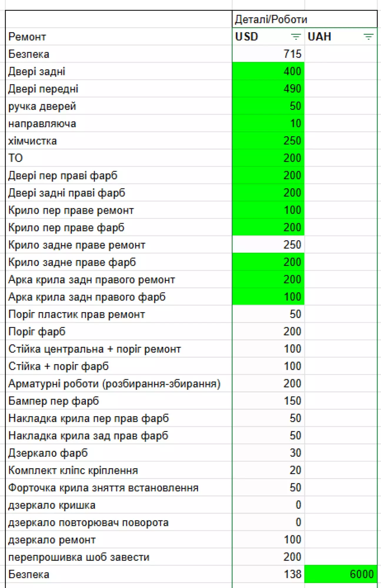 Зроблені роботи і вартість (+ і ще 1к за першу реєстрацію)
